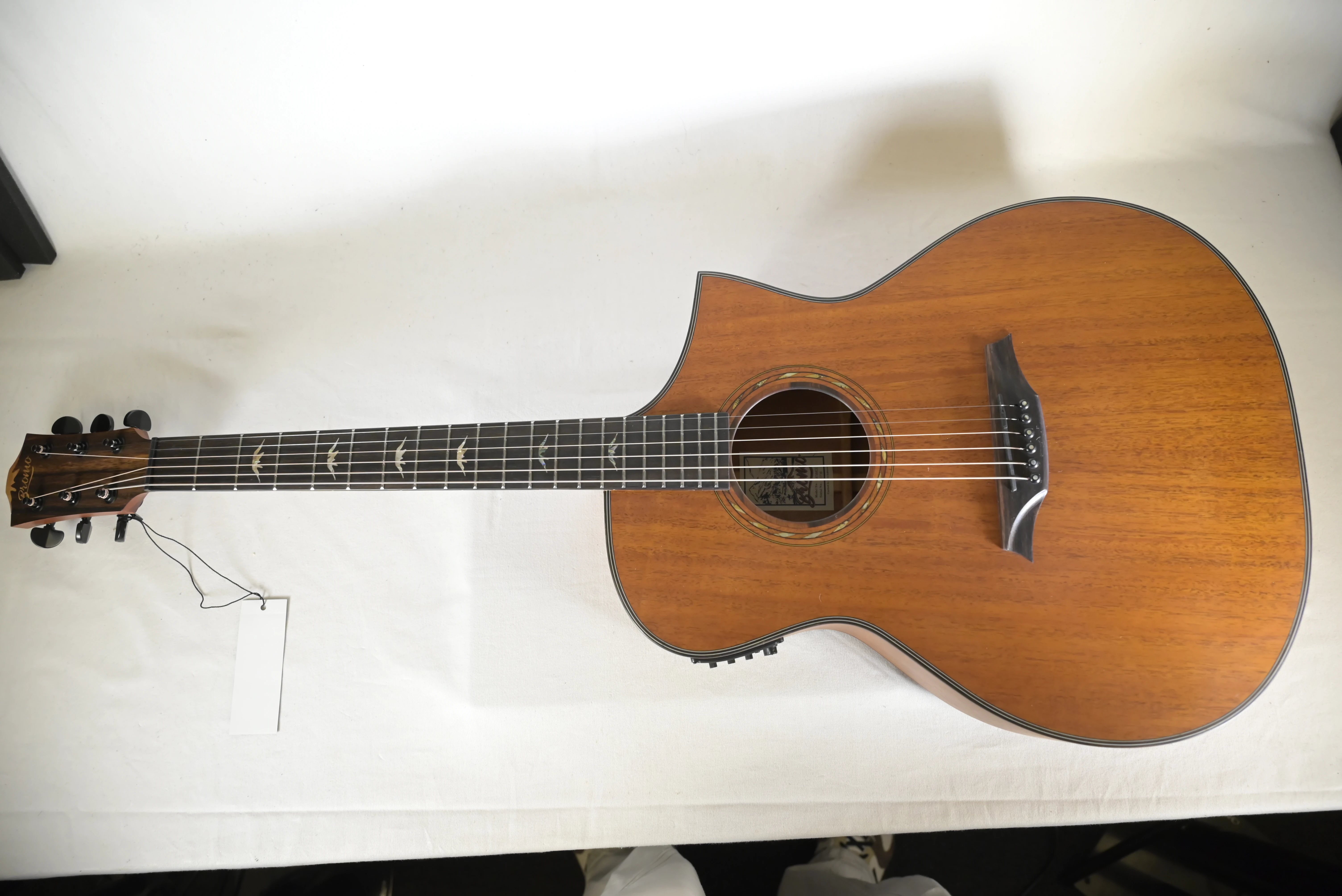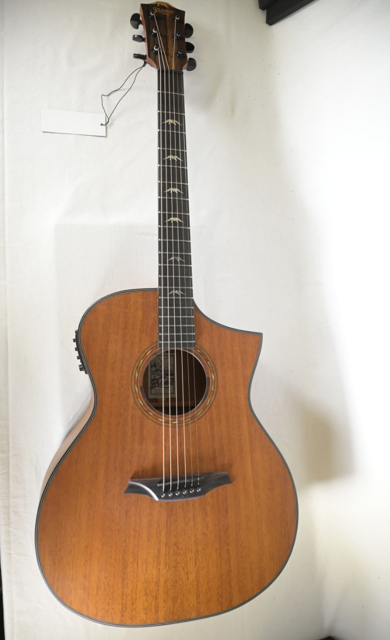 Voici une guitare acoustique électro avec un design élégant et une excellente jouabilité. Son corps de format Auditorium avec coupe en cutaway offre une accessibilité optimale aux frets supérieurs pour une plus grande liberté de jeu. La table, le dos et les éclisses sont en acajou massif, apportant un son chaud, riche et équilibré. Le manche en acajou, associé à une touche en ébène de 20 frets de style Jumbo, offre une grande confort lors du jeu.