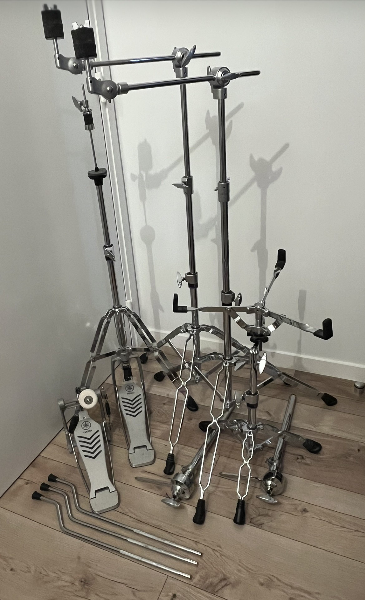 Batterie acoustique YAMAHA Rydeen grise pailletée + accessoires YAMAHA : Grosse Caisse 20" + Pédale Tom Bass 14" sur pied Tom 12", Tom 10" sur support Caisse Claire 14" + stand Stand Hi-Hat double embase 2 Pieds Perche double embase.