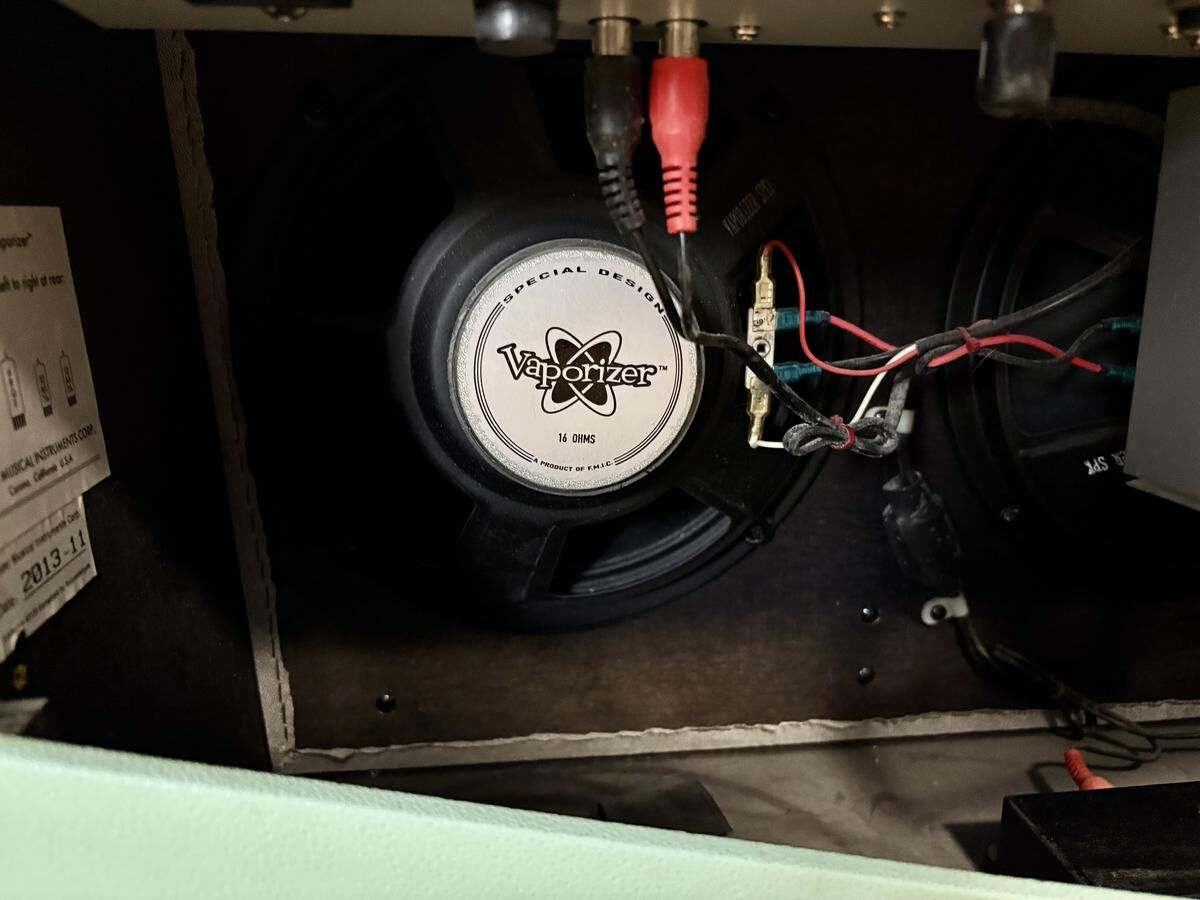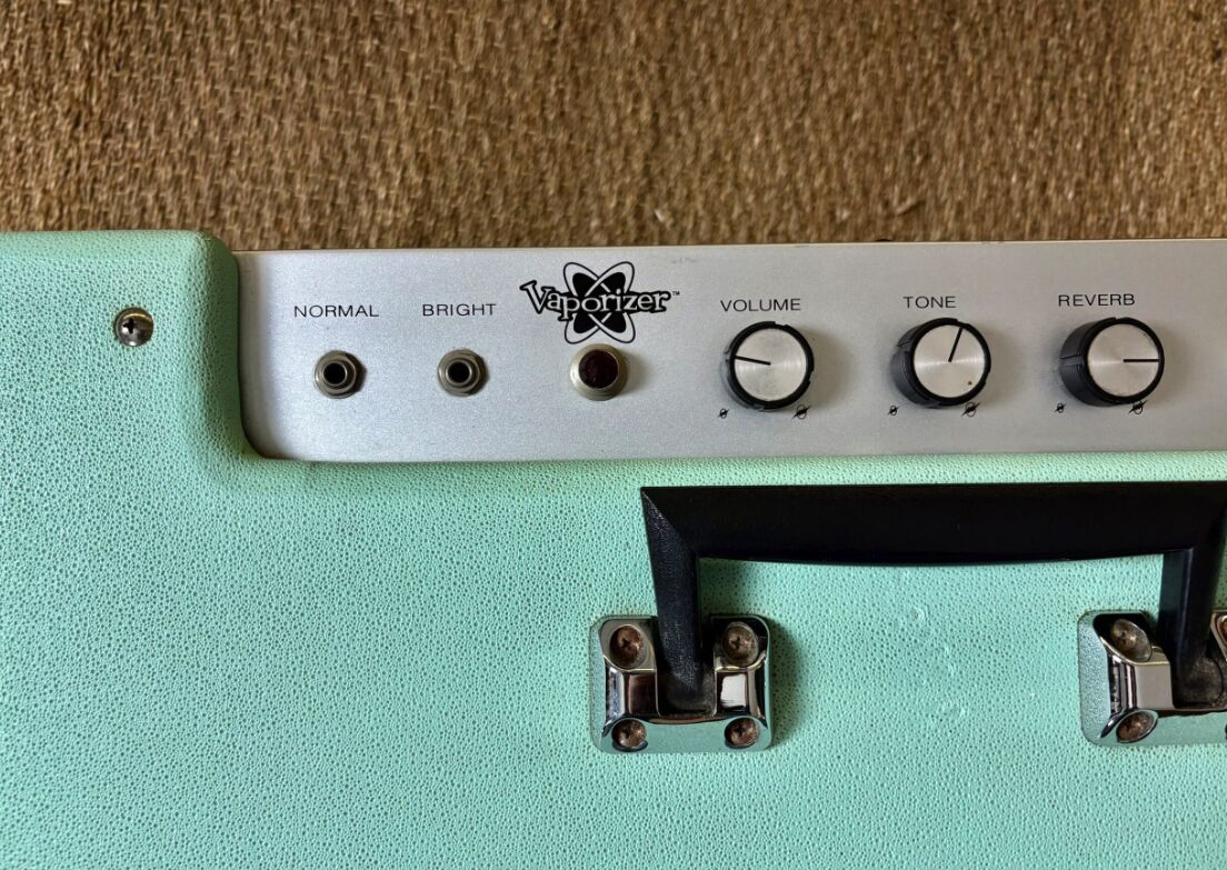 Le Vaporizer est un ampli à lampes de 12 watts au look rétro très marqué, équipé de deux haut-parleurs 10" et d'une reverb à ressort. Issu de la série Pawn Shop, il offre un son vintage parfait pour le rock garage, le blues ou les ambiances surf. Il dispose d’un canal unique avec un switch "Vaporizer" qui bypass les réglages pour un boost immédiat. Compact, original et au caractère affirmé, il séduit autant par son style que par son grain. Vendu avec son footswitch.