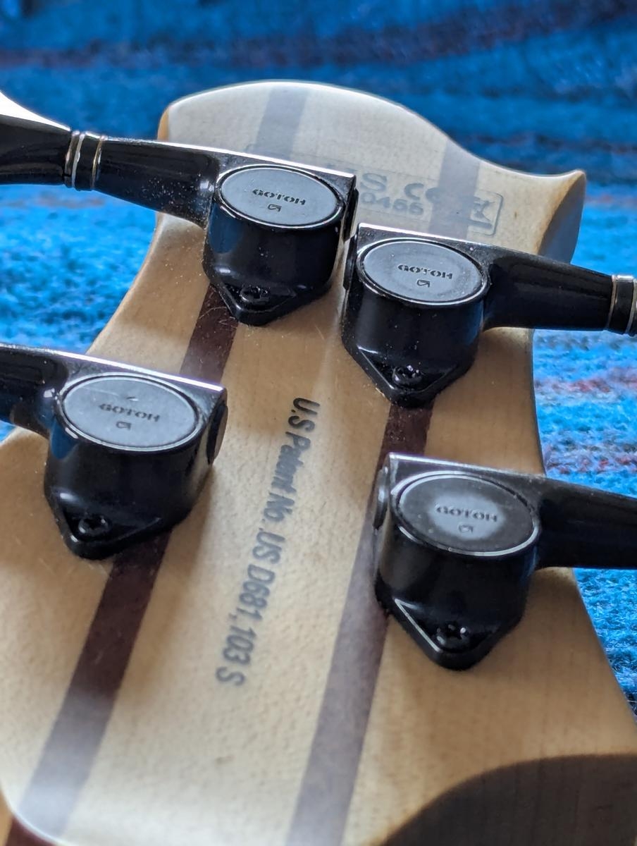 J’ai changé les mécaniques par des mécaniques de marque Gotoh, et un chevalet "single rail" de meilleure qualité que l’original.