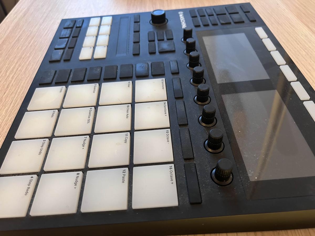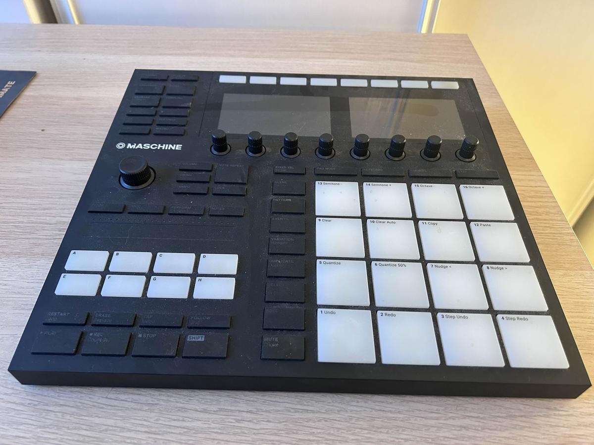 La Maschine MK3 est un contrôleur hybride pour la production musicale et les performances en direct, développé par Native Instruments. Conçu pour être utilisé avec le logiciel Maschine, il combine une interface intuitive avec des fonctionnalités avancées qui facilitent la création musicale, le sampling, l’arrangement et le sound design.Caractéristiques principales16 pads sensibles à la vélocité et à l'aftertouch, rétroéclairés RGB, pour la programmation de rythmes, le lancement de clips ou la lecture mélodique.Deux écrans haute résolution (RGB couleur) facilitant la navigation, l'édition et le contrôle des projets sans avoir constamment recours à l'ordinateur.Interface audio intégrée : 2 entrées ligne (6,35 mm), 2 sorties ligne (6,35 mm), sortie casque et entrée/sortie MIDI.Encodeur tactile et huit potentiomètres assignables pour un contrôle précis des paramètres.Boutons de transport dédiés (lecture, enregistrement, undo, redo).Fonction Smart Strip : ruban tactile permettant le pitch bend, la modulation et d'autres effets de performance.Alimentation par USB ou adaptateur secteur (inclus).Dimensions et poidsDimensions : 320 mm x 301 mm x 41 mmPoids : 2,2 kgUtilisation typique