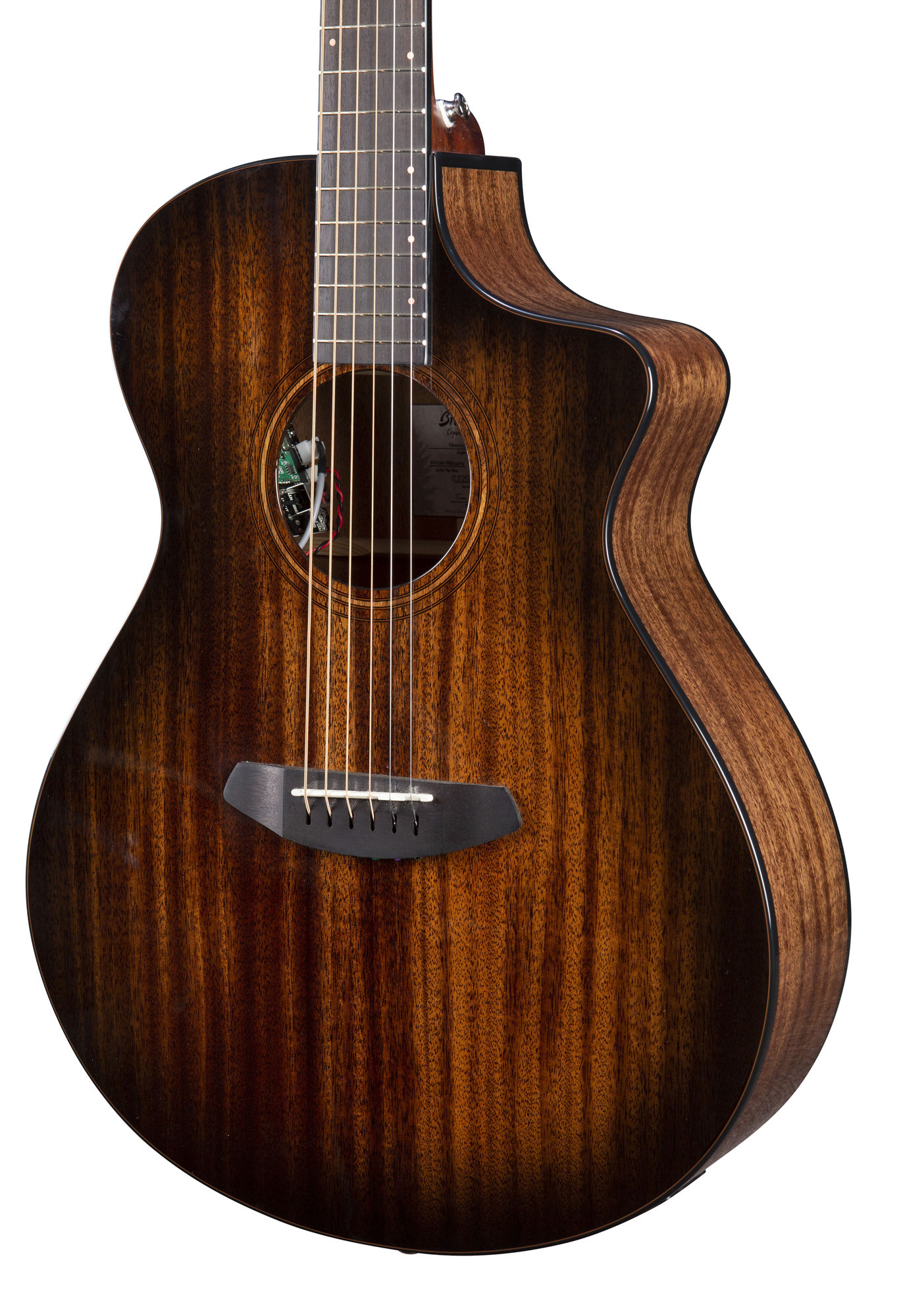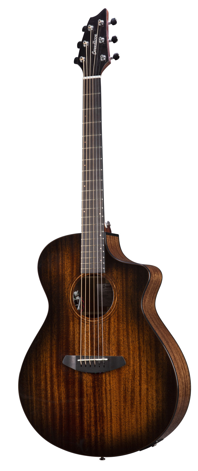Sa construction en acajou massif pour la table, le fond et les éclisses, associée à des composants comme les sillets Tusq, les mécaniques Premium Breedlove et l’électronique Fishman Flex Plus-T, apporte une configuration cohérente et soignée.