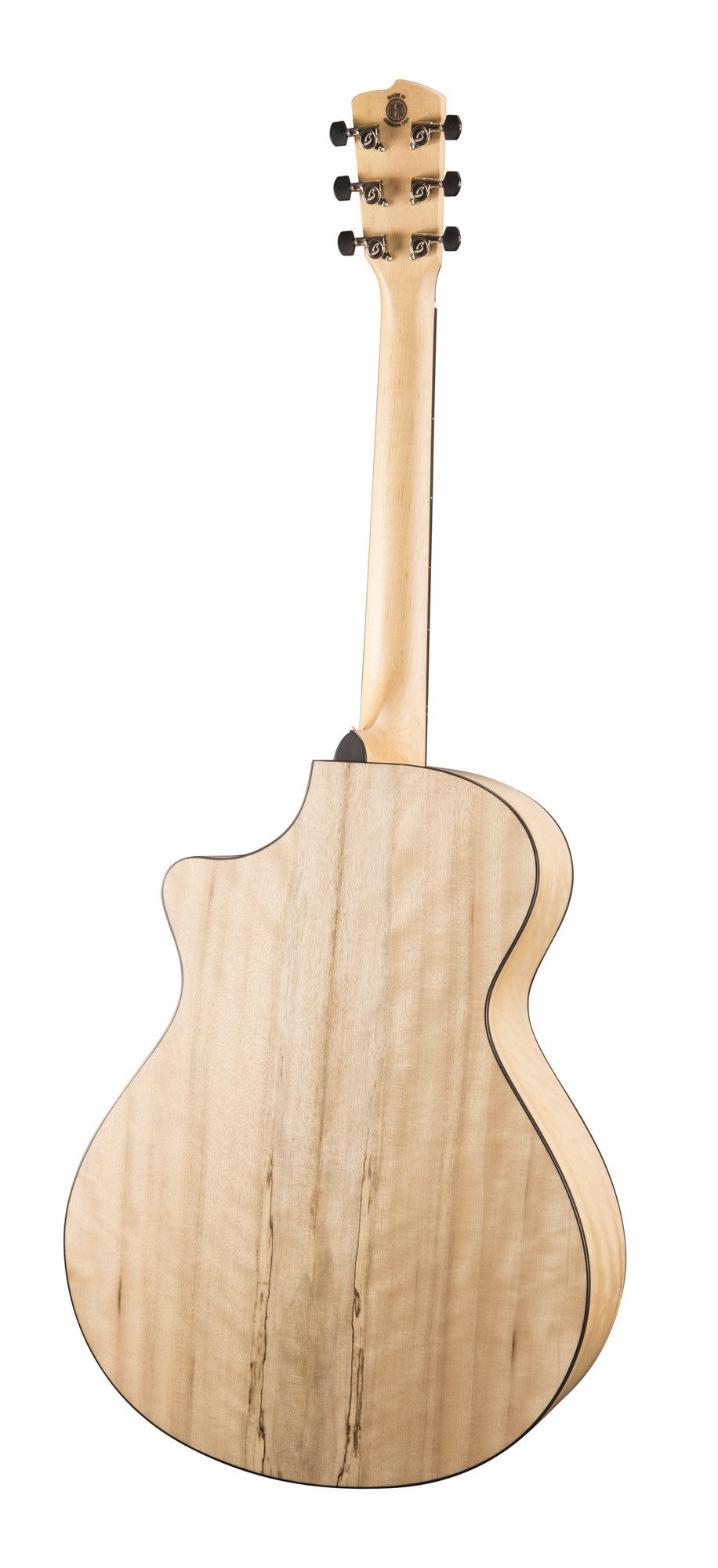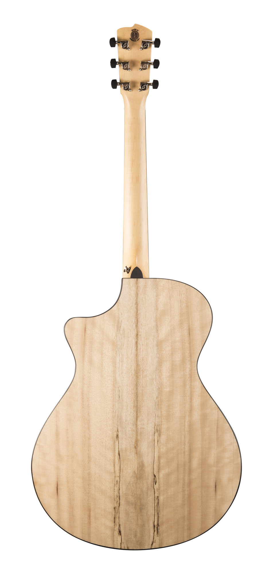 Ce modèle se distingue par une conception soignée et une lutherie haut de gamme, avec une table en myrtlewood massif, un fond et des éclisses en myrtlewood massif, ainsi qu’un manche en érable dur. Son format pan coupé facilite l’accès aux aigus, tandis que la touche et le chevalet en ébène participent à une sensation de jeu précise et confortable.