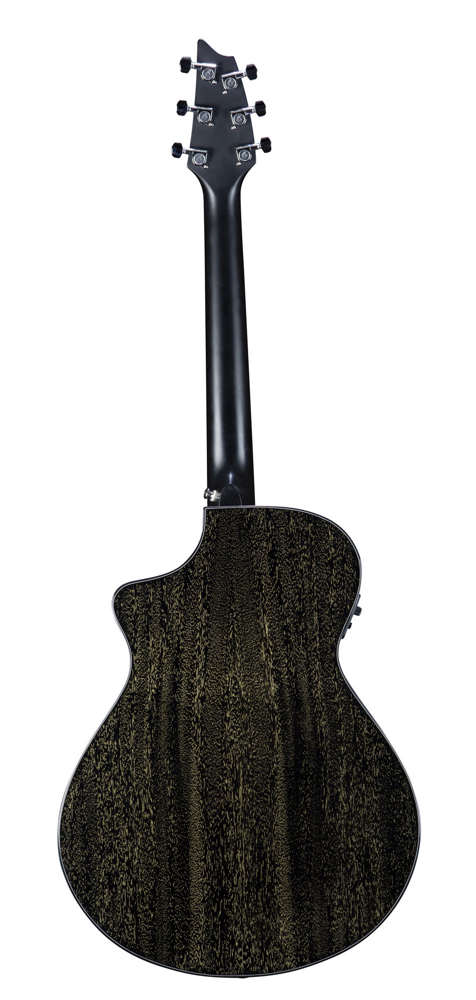 Son manche en acajou, sa touche et son chevalet en ovangkol, ainsi que son sillet de 43 mm contribuent à une prise en main agréable. Elle est également équipée de 20 frettes, d’incrustations “centered dots”, d’un binding noir et de sillets PPS. Les mécaniques Breedlove Premium chromées avec boutons noirs assurent un accordage soigné, et le système Fishman Presys I permet une amplification simple et efficace.