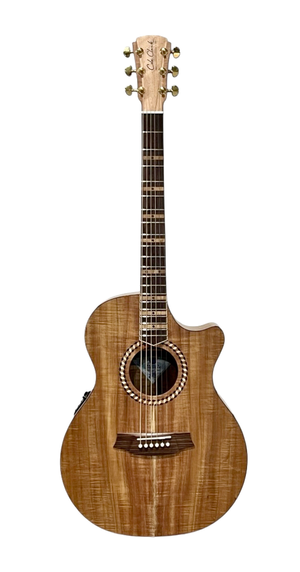 Il offre une conception en bois massif pour la table, le fond et les éclisses, une construction avec table et fond sculptés de l’intérieur, ainsi qu’un équipement de qualité comprenant des mécaniques Grover, des sillets Tusq Graph Tech et une finition nitrocellulose.