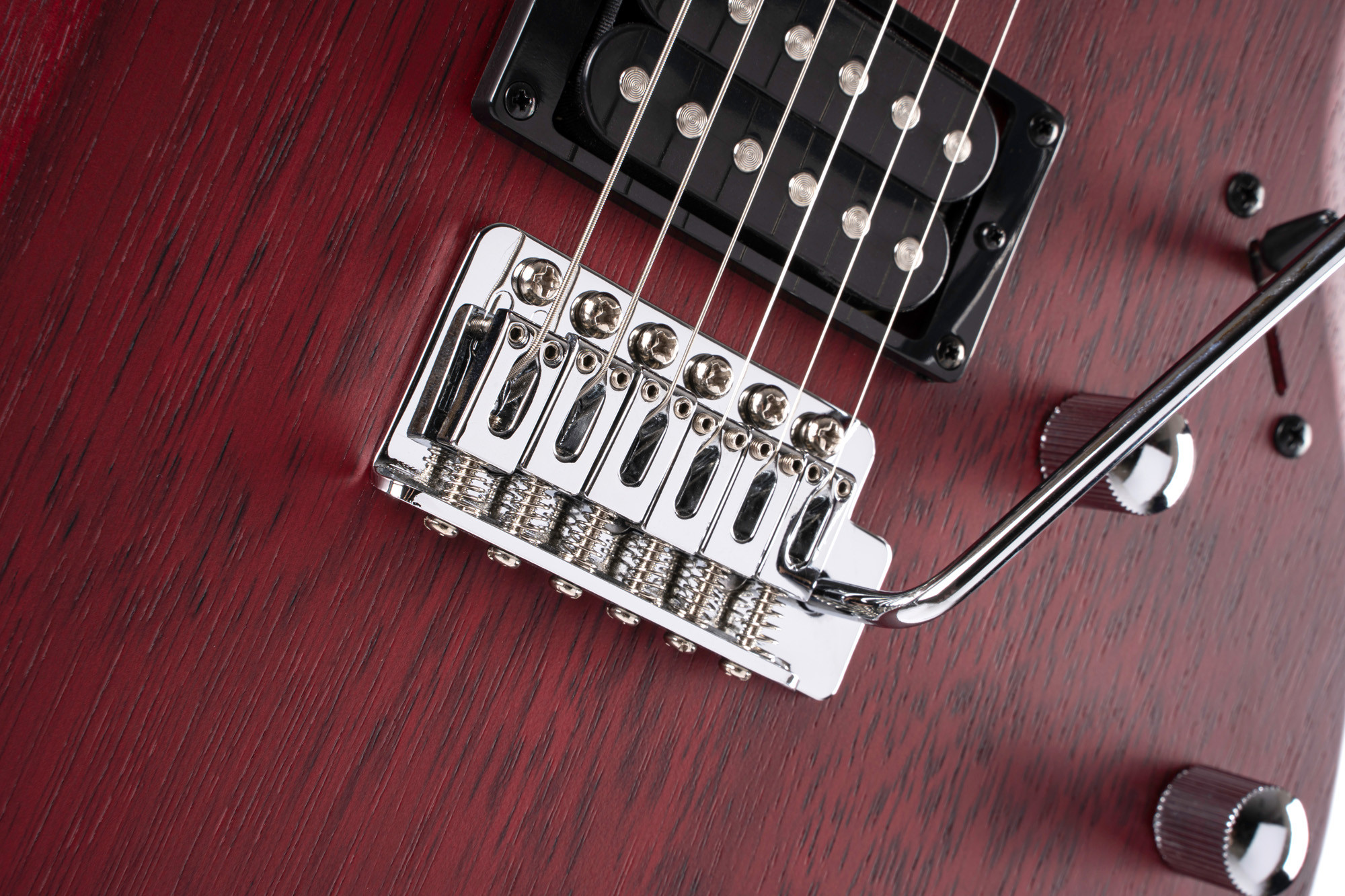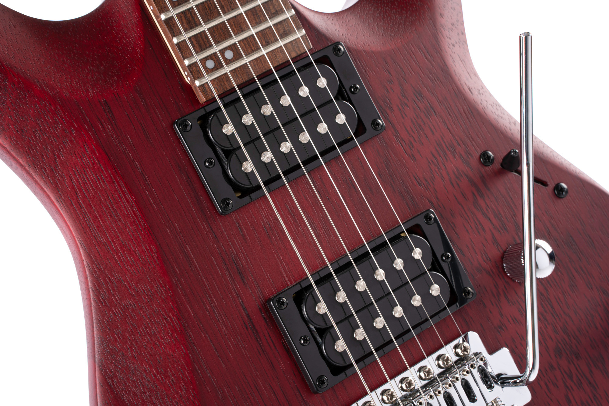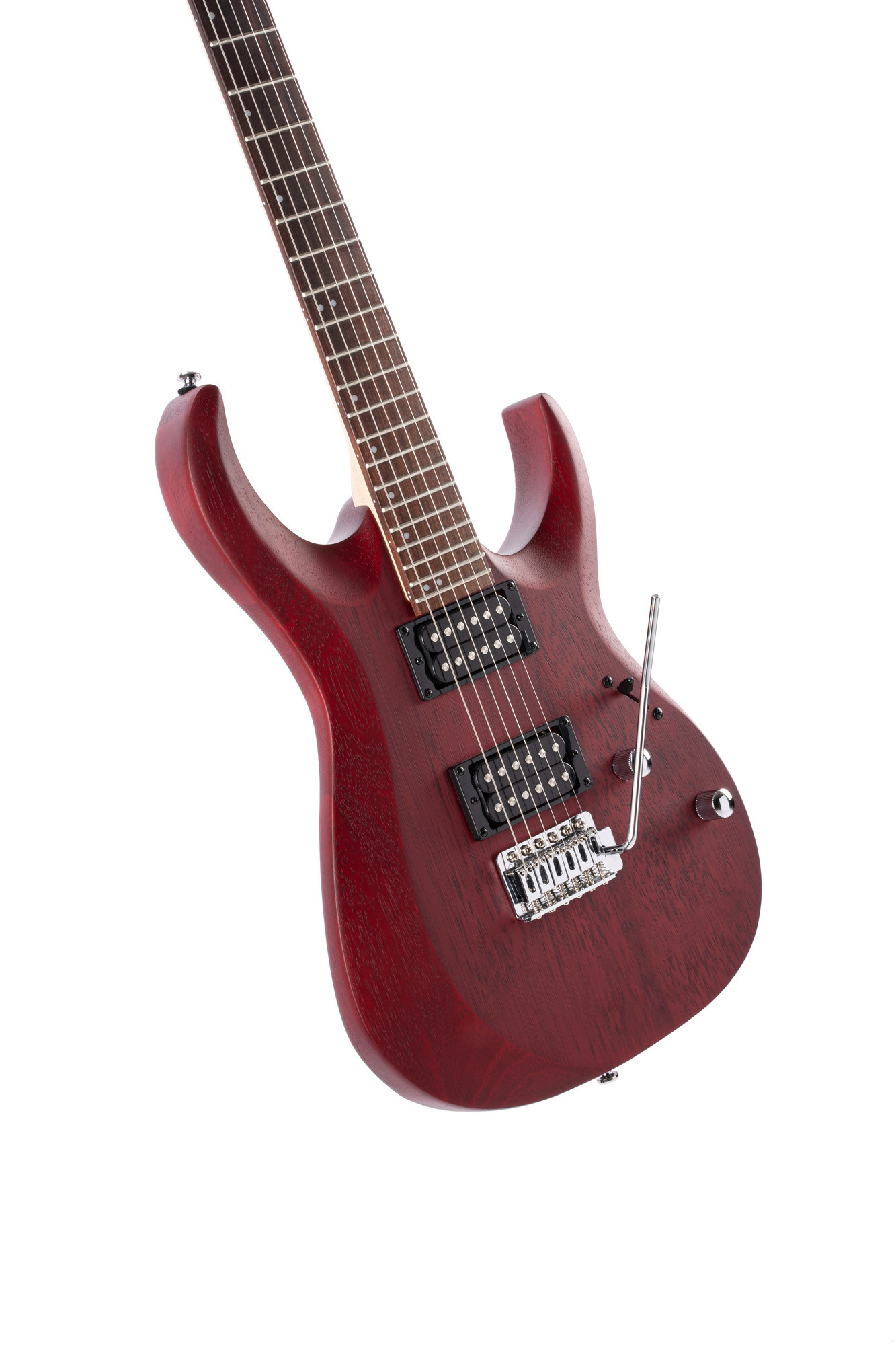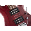 Avec son corps en meranti et son manche en érable, ce modèle offre une prise en main confortable et un bon équilibre de jeu. La touche en jatoba, les 24 frettes et le vibrato à 6 points contribuent à une expérience de jeu polyvalente, adaptée aux styles où la souplesse et la précision sont recherchées. Les deux micros doubles Powersound permettent d’obtenir un son puissant, tandis que la finition black cherry à pores ouverts met en valeur un rendu visuel sobre et expressif. L’accastillage noir complète l’ensemble avec une esthétique harmonieuse.