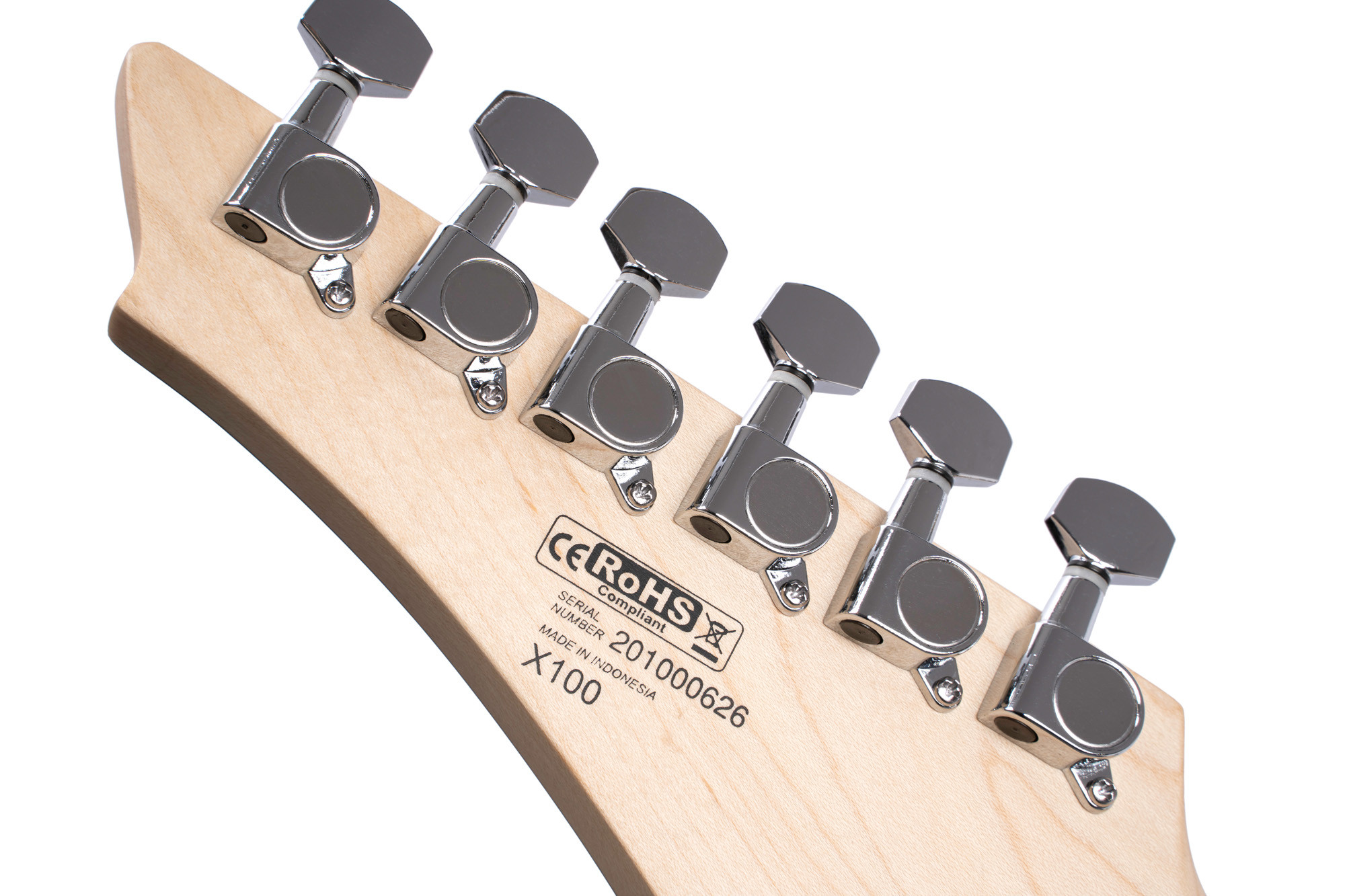 Il se distingue par sa configuration complète, avec deux micros doubles, 24 frettes, trémolo 6 points et finition black cherry à pores ouverts. C’est un choix pertinent pour profiter d’un instrument bien équipé, au style affirmé, sans sortir de sa catégorie.