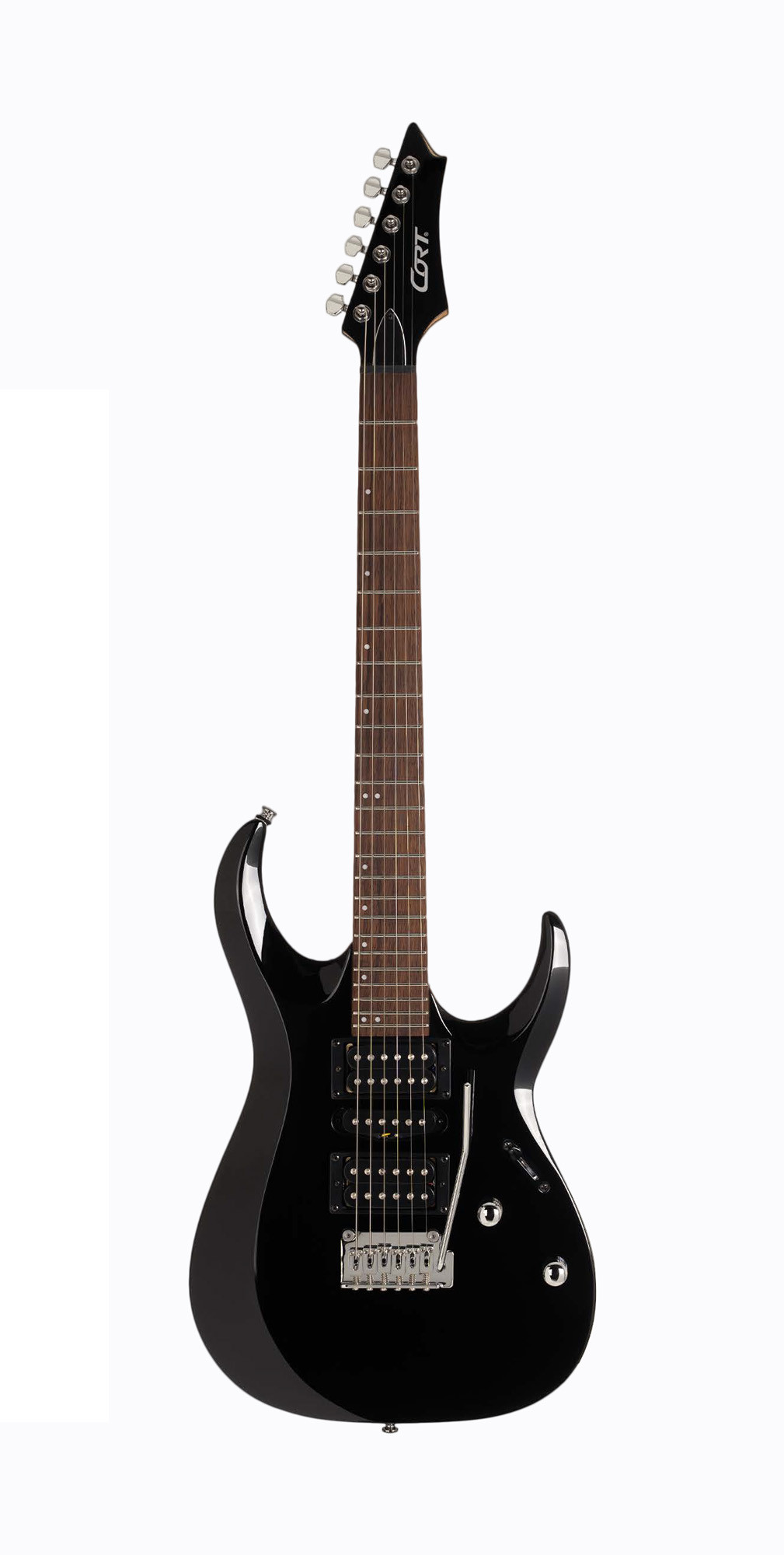 X200, 24 frettes, corps peuplier, manche érable, touche jatoba, trémolo 2 points, Micros Cort Powersound (H-S-H), noir brillant.