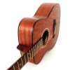 Ce modèle au format Concert se distingue par sa construction en acajou et son aspect naturel à pores ouverts. La table, le fond, les éclisses et le manche sont en acajou, tandis que la touche et le chevalet sont en merbau. Avec ses 20 frettes et son sillet de 43 mm, il offre une configuration sobre et cohérente, pensée pour une utilisation simple et efficace.
