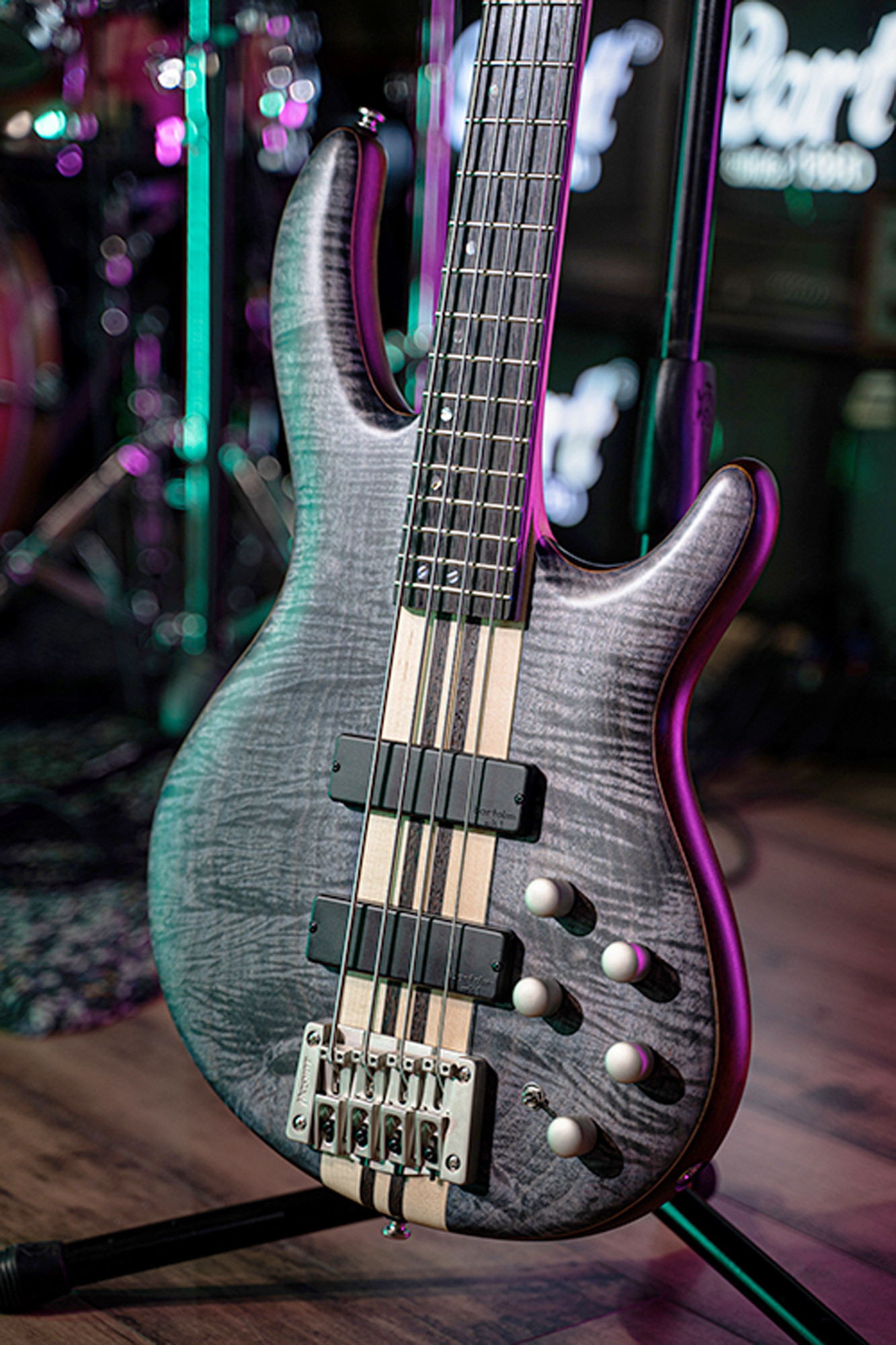 Elle se distingue par l’association de la table en érable flammé, du corps en acajou, du manche traversant et de l’électronique Bartolini MK-1. Le switch EQ on/off, le chevalet Hipshot Transtone avec cordes traversantes et les mécaniques Hipshot en font un choix pertinent pour ceux qui recherchent une configuration complète et bien équipée dans cette catégorie.