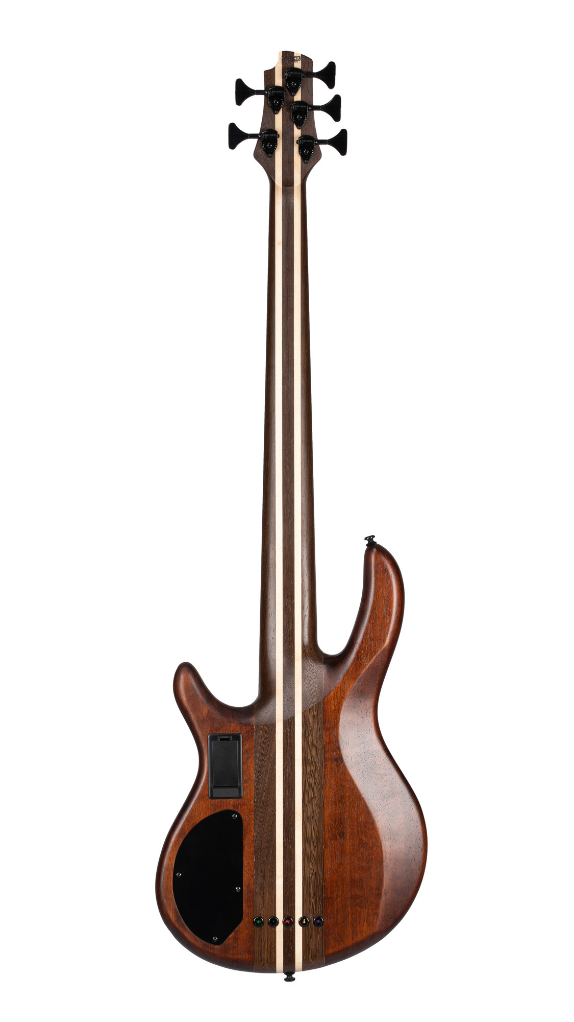 Cette basse 5 cordes associe une construction soignée et des composants haut de gamme pour offrir une prise en main précise et un son polyvalent. Elle dispose d’un corps en acajou avec table en frêne sablé, d’un manche traversant 5 pièces érable/panga panga et d’une touche panga panga sur 24 frettes.