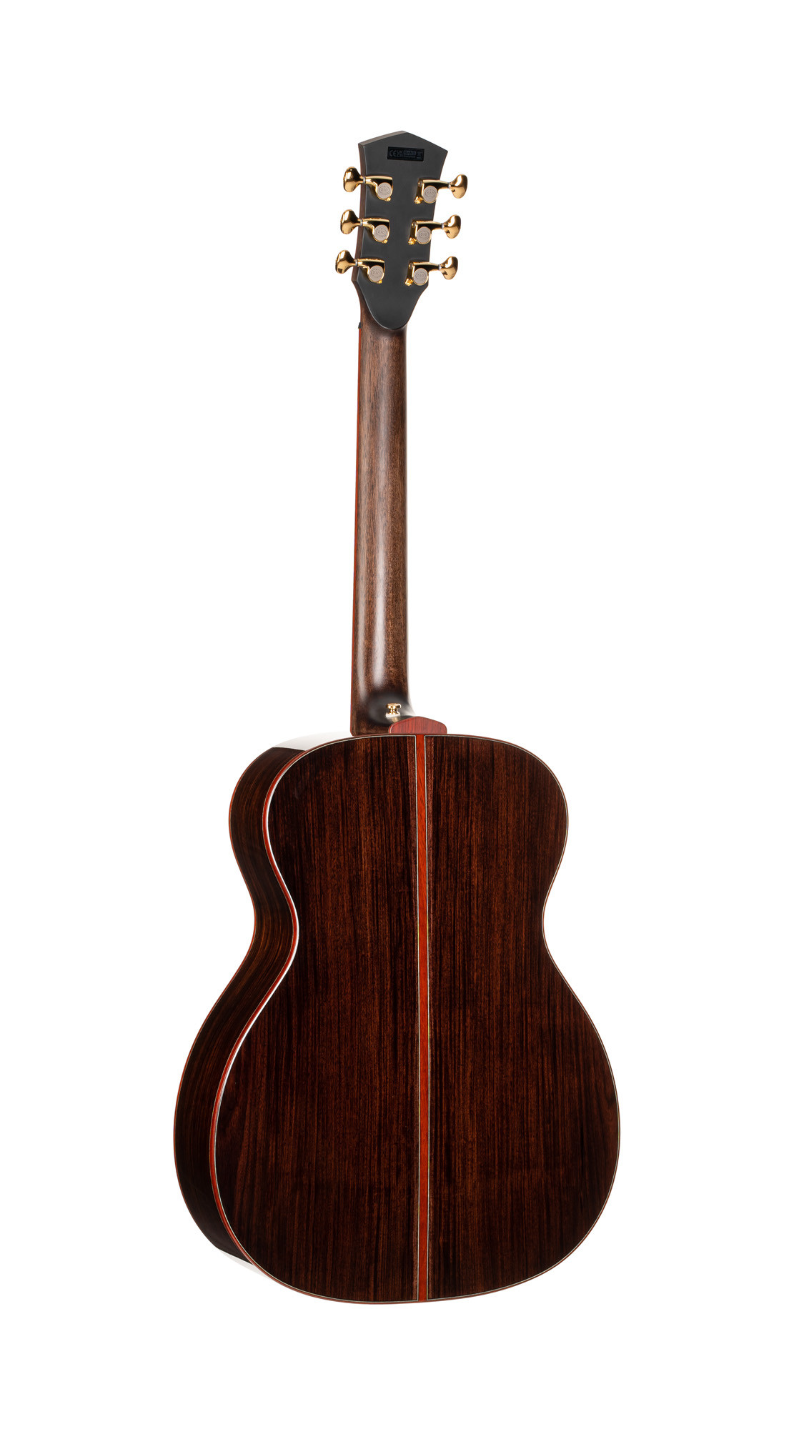 Ses principaux avantages reposent sur une table en épicéa Sitka massif, un fond et des éclisses en pau ferro massif AAA, une touche et un chevalet en ébène, ainsi qu’une finition UV pensée pour optimiser les propriétés acoustiques. L’ensemble est complété par des mécaniques Gotoh dorées et un préampli LR Baggs Anthem.