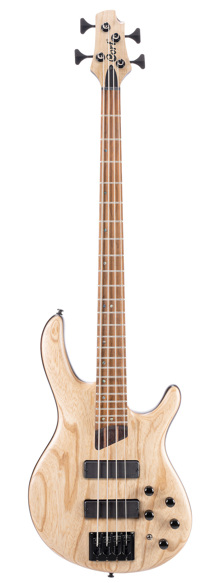 B4 Element, corps acajou, table frêne, touche érable torréfié, micros & préampli Bartolini MK-1, naturel pores ouverts.