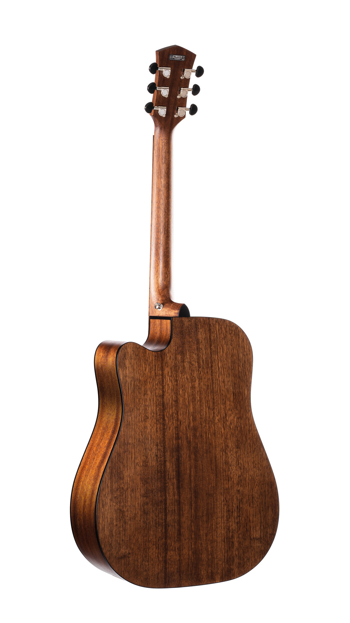 Cette guitare acoustique de format Dreadnought se distingue par une conception entièrement pensée pour offrir une belle projection et une réponse équilibrée. Sa table en acajou massif, associée au fond et aux éclisses en acajou massif, contribue à un son chaleureux et précis, avec une présence naturelle appréciée dans de nombreux styles de jeu. Le manche en acajou, la touche et le chevalet en ovangkol, ainsi que les sillets en os, participent à une sensation de jeu soignée et à une bonne stabilité générale.