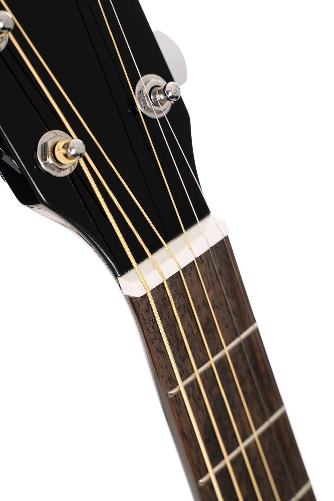Avec ses 20 frettes, son sillet de 43 mm et ses mécaniques à bain d’huile chromées, elle réunit des éléments essentiels pour une utilisation simple et régulière. Son format et ses matériaux en font un modèle équilibré, adapté à ceux qui recherchent un instrument acoustique au style sobre et à la fabrication sérieuse.