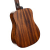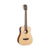Ce modèle Dreadnought 3/4 associe une table en épicéa massif à un fond et des éclisses en acajou pour une conception soignée et compacte. Il dispose d’un manche en acajou, d’une touche et d’un chevalet en laurier, ainsi que de 20 frettes et d’un sillet de 43 mm. Sa finition naturelle à pores ouverts met en valeur l’aspect du bois. Il est livré avec une housse.