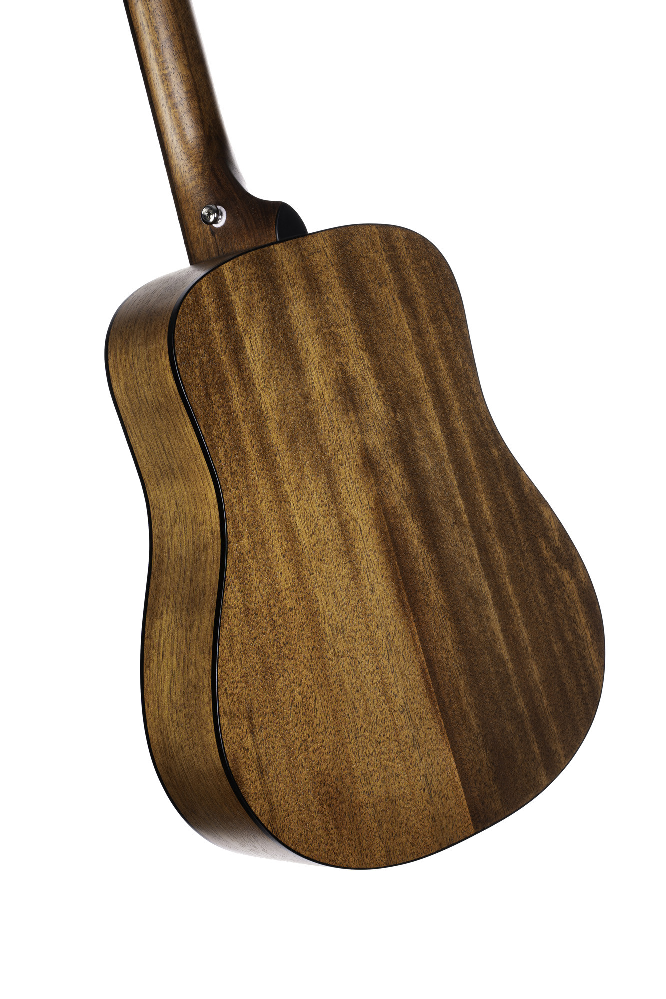 Ce modèle compact au format Dreadnought 3/4 convient particulièrement aux musiciens à la recherche d’un instrument plus maniable, adapté aux sessions de jeu confortables et à un format pratique. Son design naturel à pores ouverts met en valeur une finition sobre et authentique.