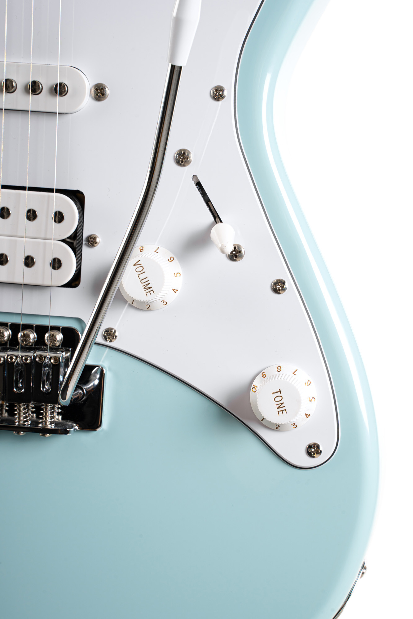 Cette guitare électrique au coloris bleu ciel associe une conception polyvalente à une prise en main agréable. Son corps en peuplier, son manche en érable et sa touche en jatoba offrent une base solide et confortable pour jouer dans différents styles. Elle est équipée de 2 micros simples et d’un micro double Powersound, ce qui permet d’obtenir une palette sonore variée, allant des sons clairs aux sonorités plus puissantes.