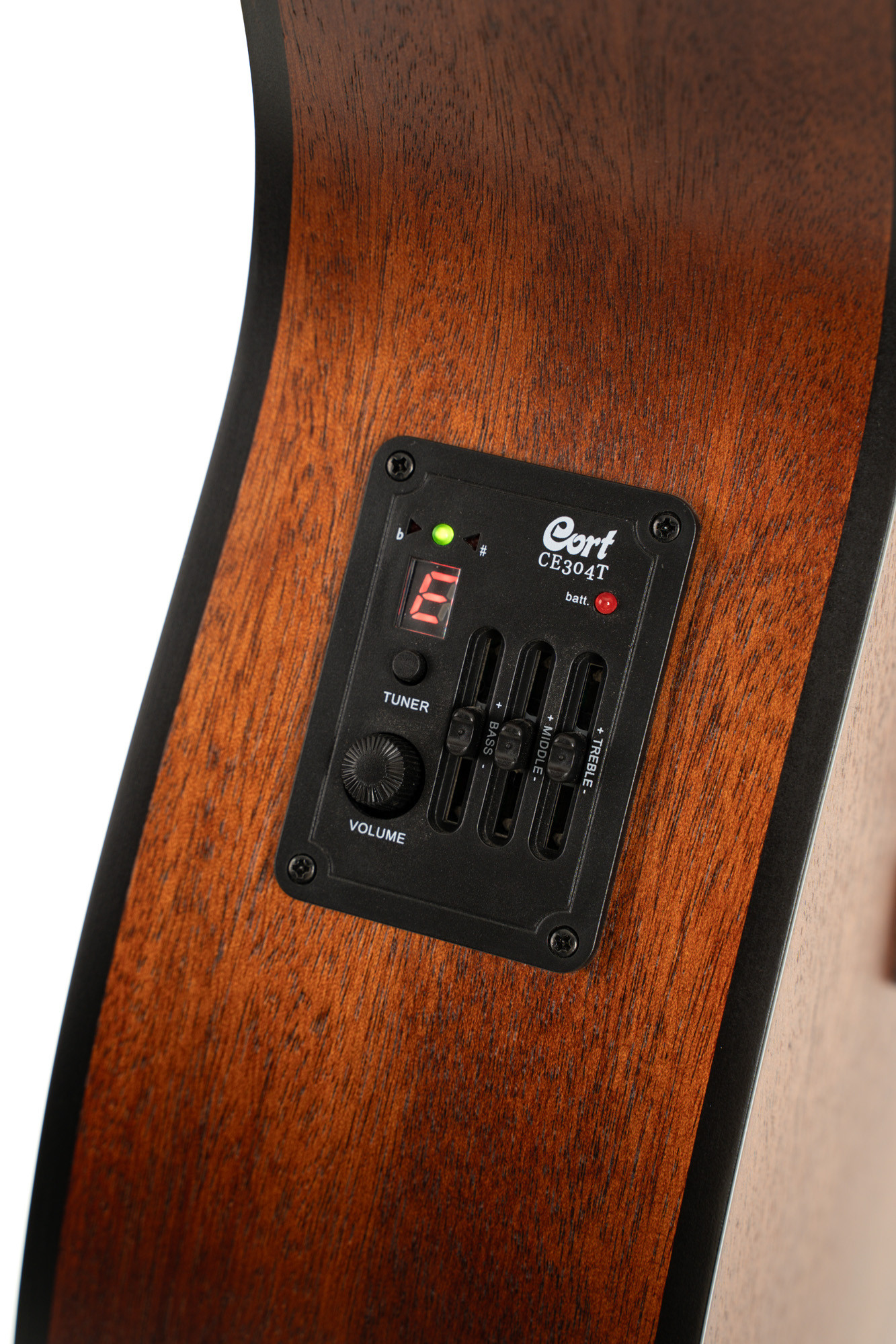 Sa table en acajou massif, son fond et ses éclisses en acajou, ainsi que sa finition à pores ouverts, constituent des atouts appréciables pour une construction simple, cohérente et soignée. L'électronique CE304T et les mécaniques à bain d'huile apportent également des éléments fonctionnels utiles.
