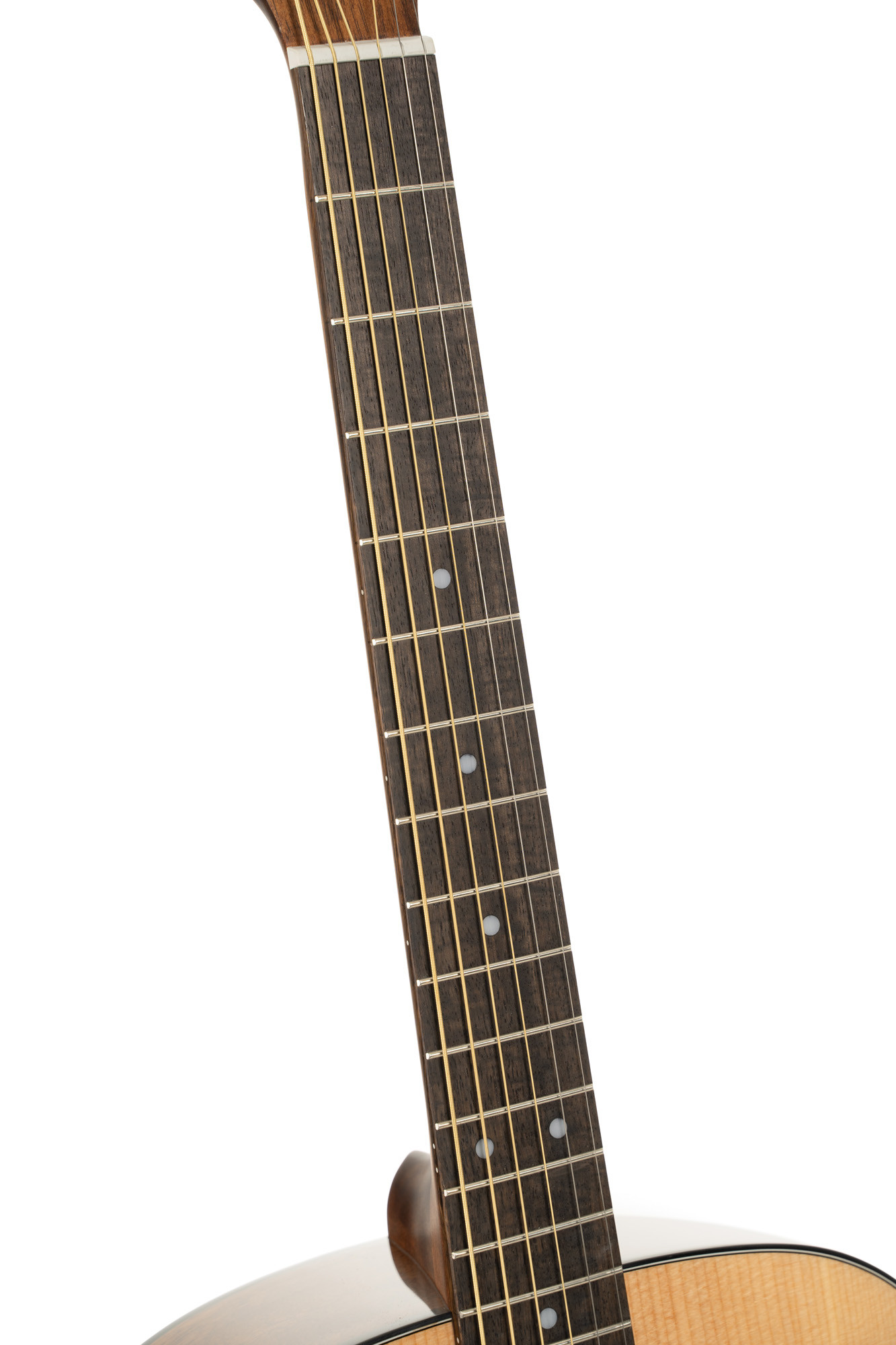 Ce modèle de forme Orchestra Model associe une table en épicéa massif à un fond et des éclisses en acajou, pour une construction soignée et cohérente. Son manche en acajou et sa touche en laurier complètent l’ensemble, avec une finition naturel brillant.