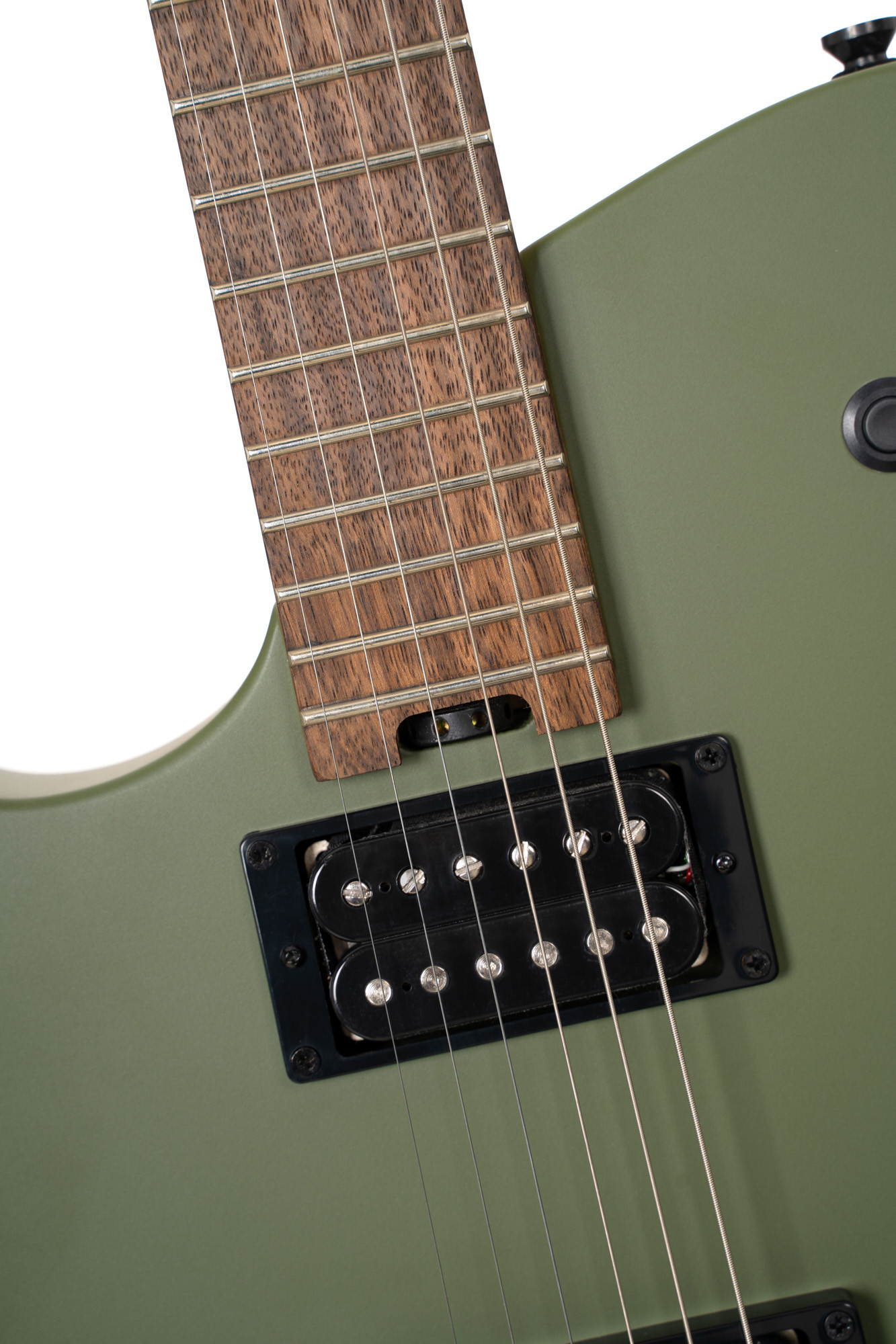 Cette guitare signature Matt Bellamy en version gaucher combine un corps en tilleul et un manche en érable à radius compensé pour une prise en main précise. Sa touche en laurier de 22 frettes, son sillet de 42 mm et ses deux micros doubles Manson offrent une configuration pensée pour un jeu expressif et polyvalent. La finition vert olive satiné apporte une identité visuelle sobre et moderne, complétée par un accastillage noir et des mécaniques à blocage étagées.