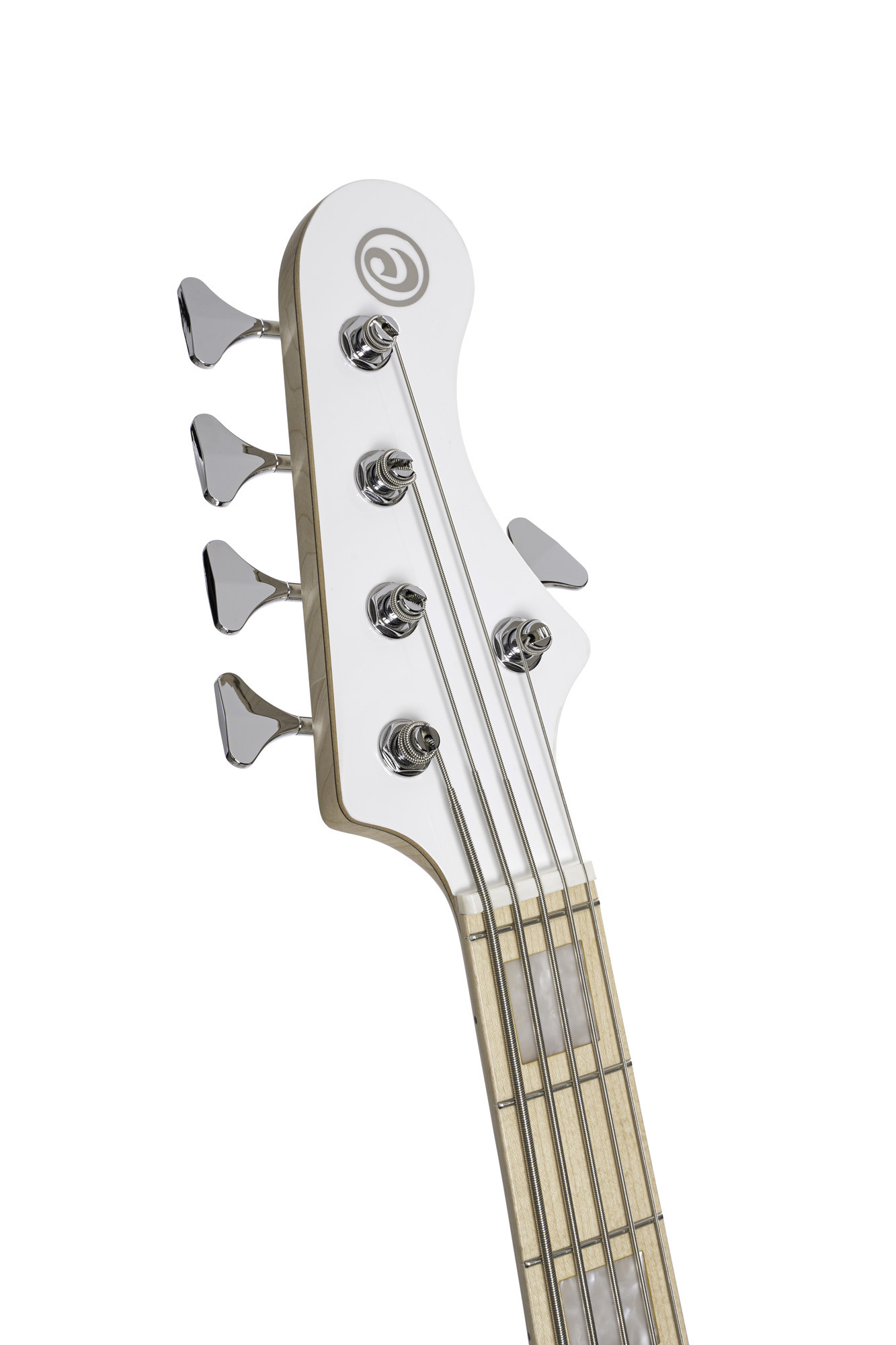 Elle est équipée de deux micros de type Jazz VTB-ST, d’un préampli 3 bandes Bartolini US custom et d’un chevalet MetalCraft M avec écart de 18 mm. On retrouve également une frette zéro, un sillet en os de 48 mm, des mécaniques Hipshot Ultralite, de l’accastillage chromé et des cordes D'Addario XL 170-5SL. La finition blanc brillant apporte une esthétique nette et élégante. Une housse est fournie.
