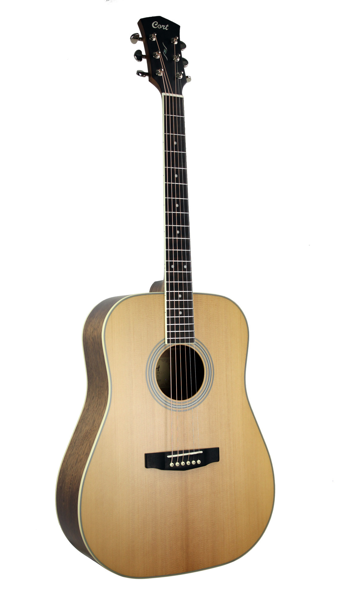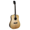 Cette guitare au format Dreadnought associe une table en épicéa Sitka massif à un fond et des éclisses en acajou massif pour offrir un instrument équilibré, précis et confortable à jouer. Son manche en acajou, sa touche et son chevalet en ovangkol, ainsi que ses sillets en os contribuent à une sensation de jeu soignée et à une bonne transmission des vibrations.