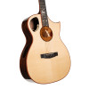 Instrument acoustique de forme Orchestra Model avec pan coupé florentin, cette référence associe une table en épicéa européen massif à des éclisses et un fond en pau ferro massif AAA pour une construction haut de gamme. Le manche en acajou/noyer 5 pièces, la touche et le chevalet en ébène, ainsi que les incrustations « Roselyn » au manche et à la rosace apportent à la fois confort, élégance et finitions soignées. La guitare est équipée d’un système EQ LR Baggs Anthem, de mécaniques Gotoh 510Z dorées, de chevilles en ébène, d’un sillet de 44,5 mm et de 20 frettes. La finition UV est conçue pour optimiser les propriétés acoustiques, tandis que les cordes Elixir Nanoweb Phosphor Bronze tirant Light 12-53 complètent l’ensemble. Livrée avec un étui deluxe, elle est proposée en naturel brillant.