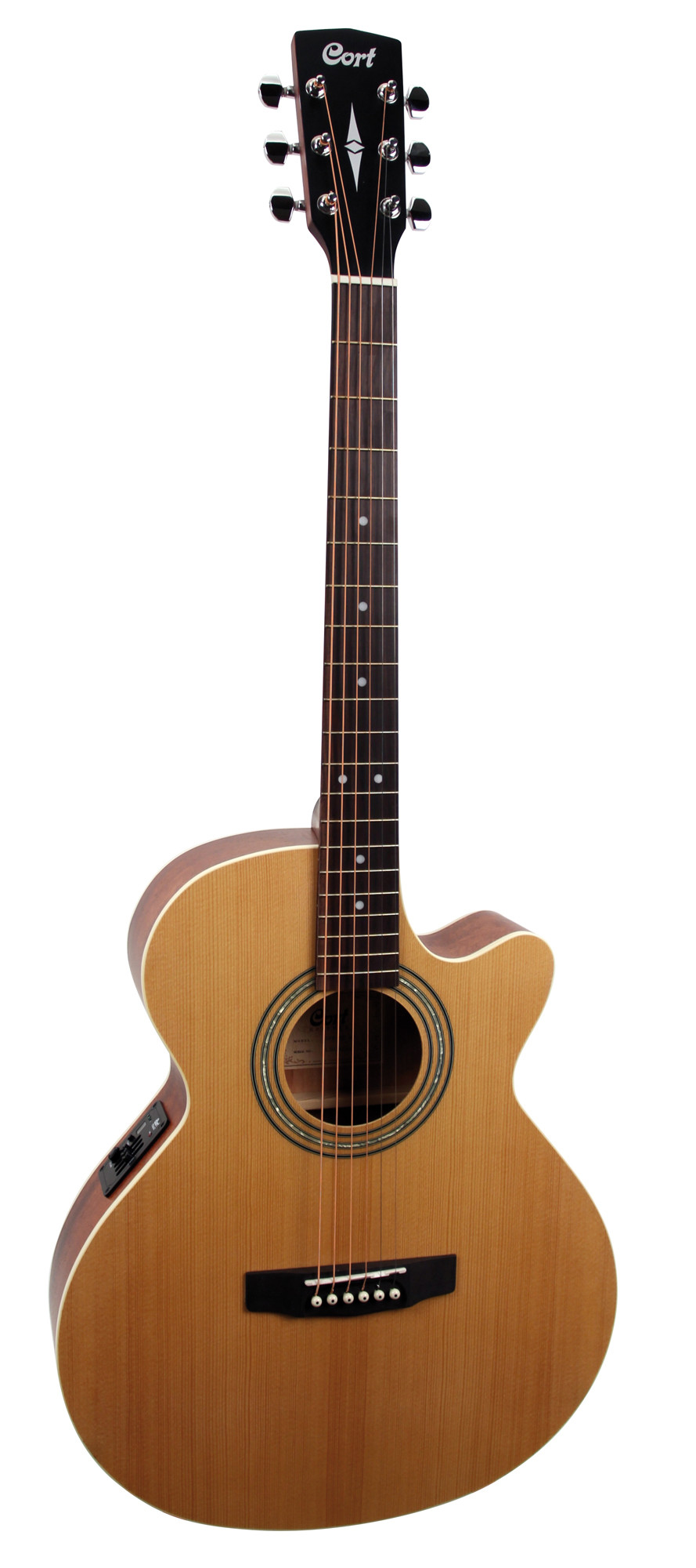 Il bénéficie d’une table en épicéa, d’un fond et d’éclisses en acajou, d’un manche en acajou, d’une touche en laurier et d’un système EQ Cort CE304T, avec une finition naturelle à pores ouverts.