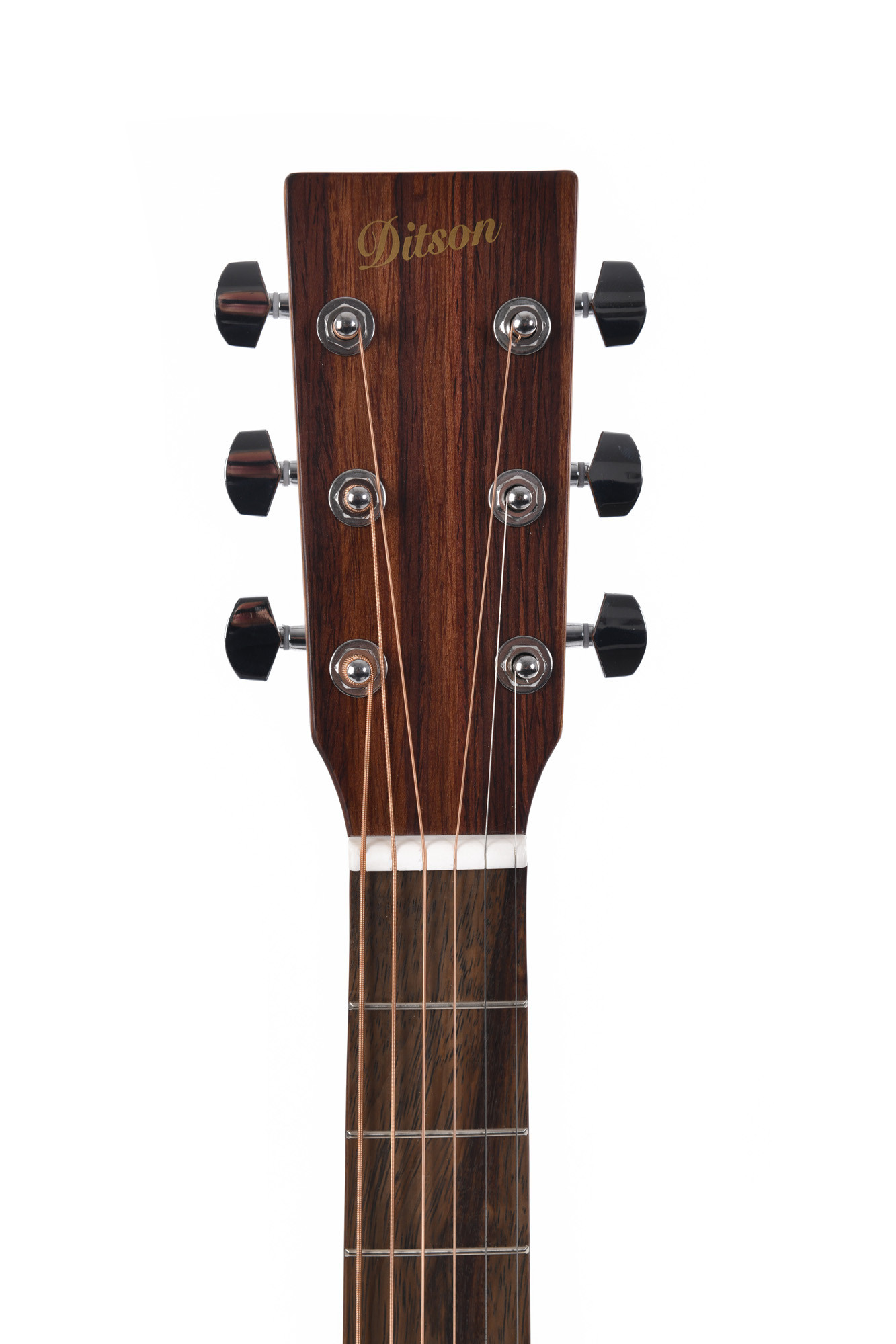 Il propose une combinaison de matériaux et d’équipements cohérente, avec une table, un fond et des éclisses en acajou, un sillet et un chevalet en os, des cordes D’Addario EXP et un EQ Sigma SE-PT.