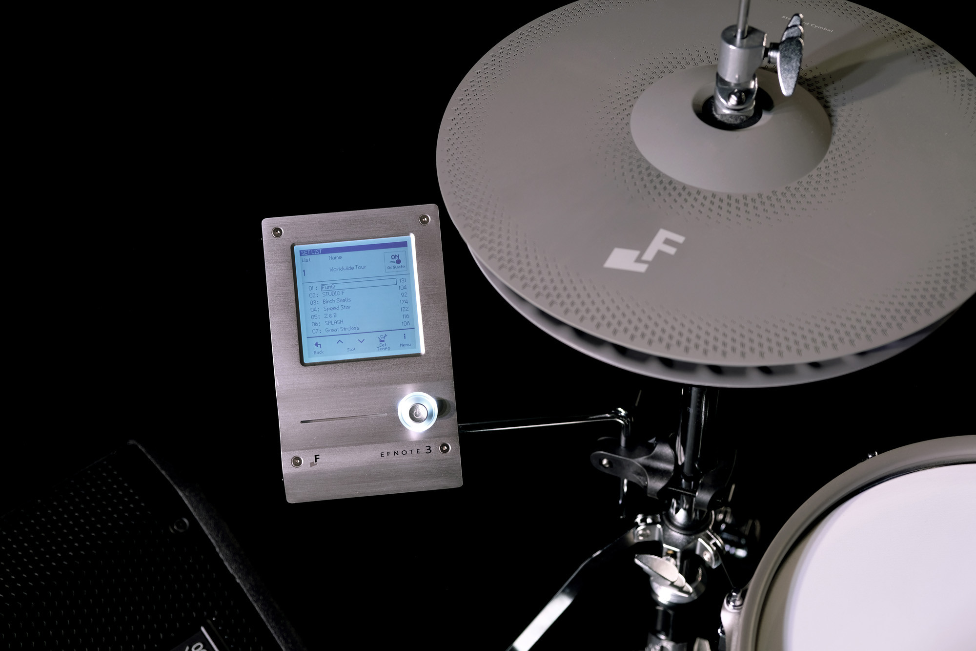 La EFNOTE 3A est une solution de batterie électronique pensée pour offrir une expérience de jeu moderne, simple et fiable. Son module de sons en boîtier aluminium avec écran tactile met à disposition une gestion intuitive des réglages et des performances, tandis que ses 98 sons multicouches et ses multiples kits permettent d’explorer facilement différents univers sonores.