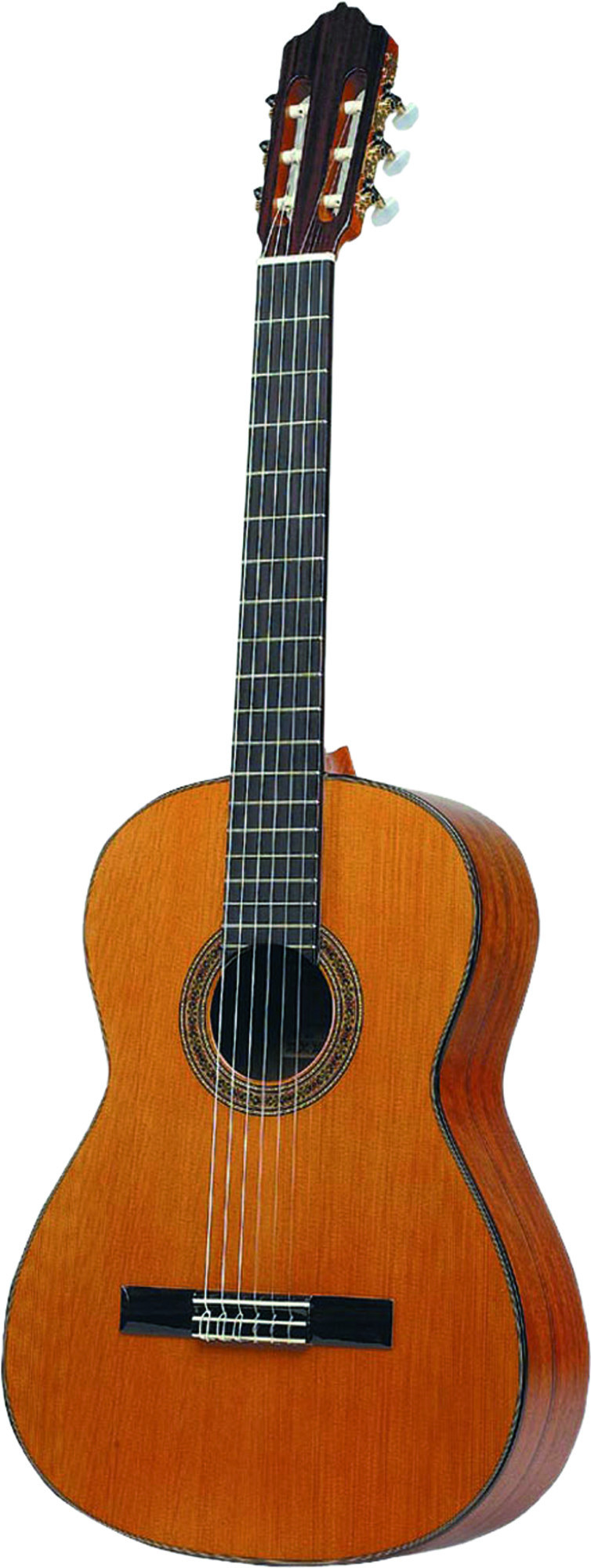 Caractéristiques : table cèdre massif, fond & éclisses mongoy massif, touche palissandre, manche acajou, diapason 650 mm, sillet de tête 52 mm, cordes Knobloch, finition naturel brillant, avec soft case.