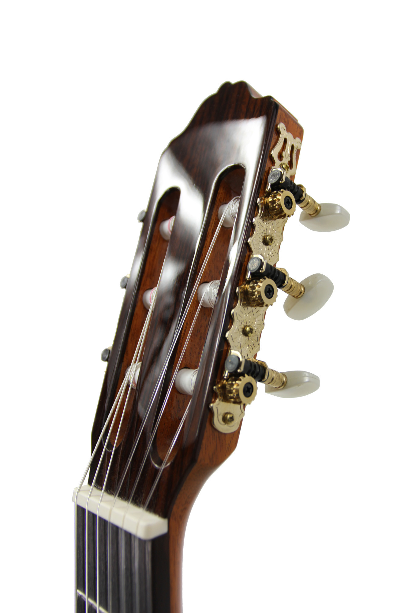 La 7SM se distingue par une conception soignée avec une table en épicéa massif, un fond et des éclisses en mongoy massif, ainsi qu’une touche en palissandre. Elle est livrée avec un soft case pour faciliter le transport et la protection de l’instrument.
