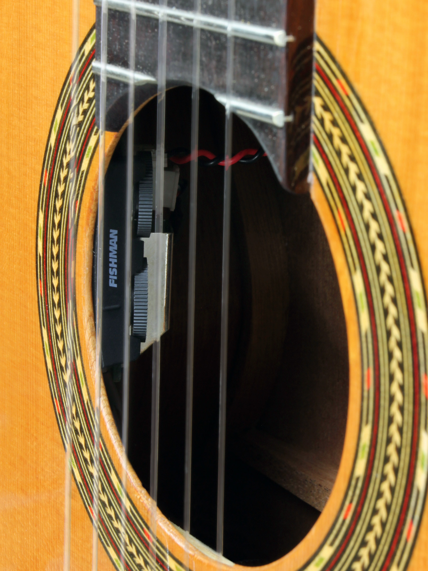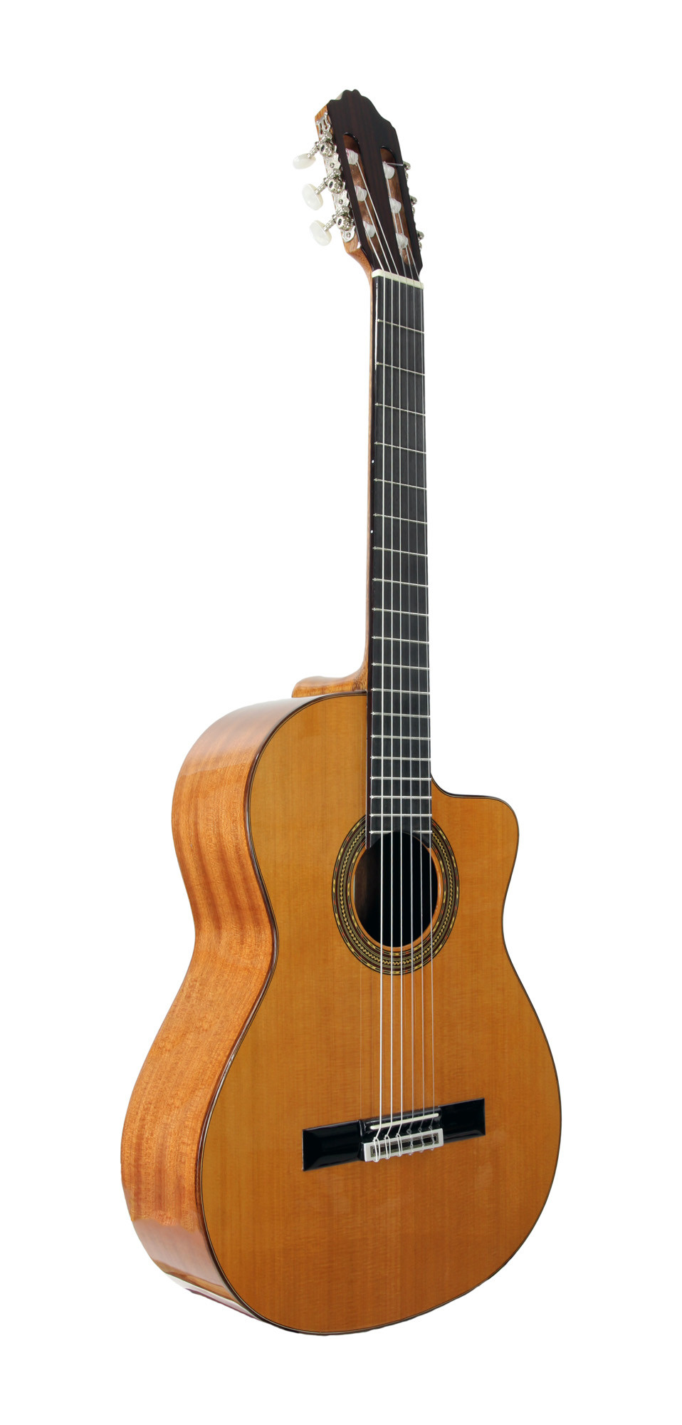 Il se distingue par l’association du pan coupé, du sillet de tête de 48 mm, de la table en cèdre massif et de l’EQ Fishman Sonitone, avec une finition naturelle brillante qui complète un ensemble équilibré.