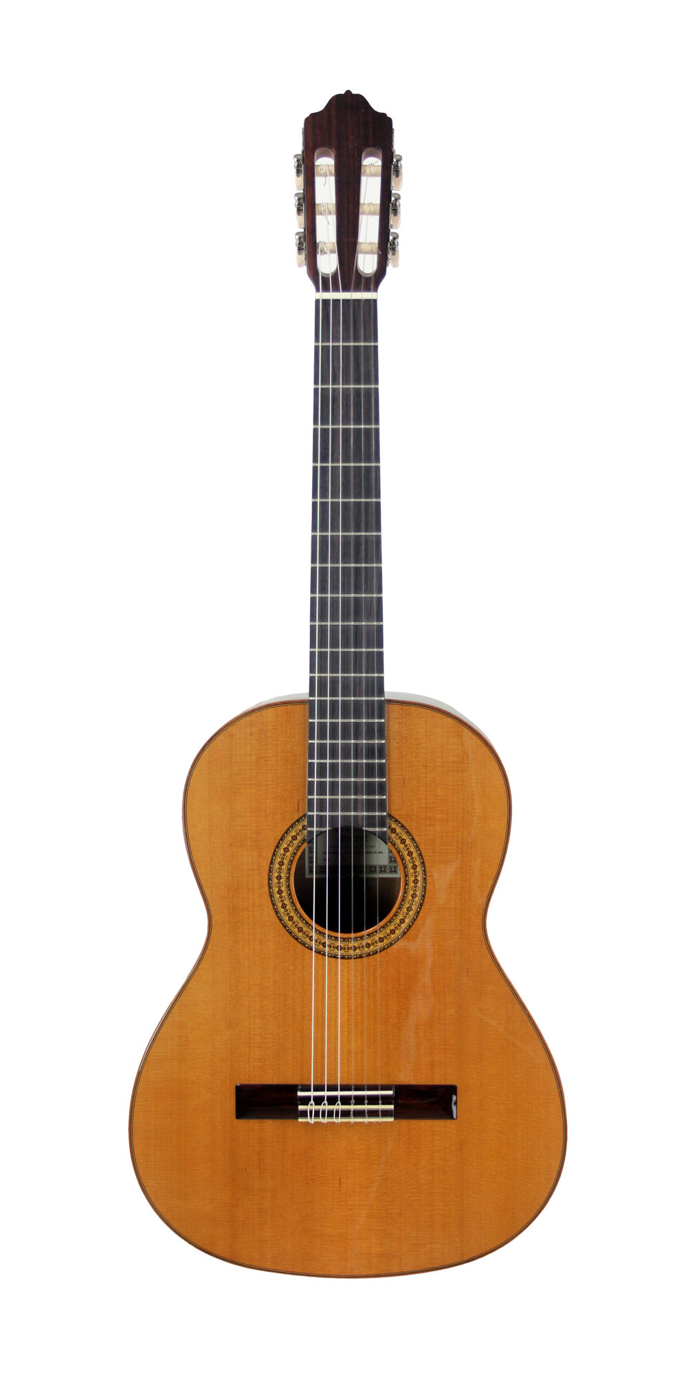 Ce modèle associe une table en cèdre massif à un fond et des éclisses en acajou, avec une touche en palissandre. L’ensemble présente une finition satinée, complétée par une table brillante pour un rendu soigné et élégant.