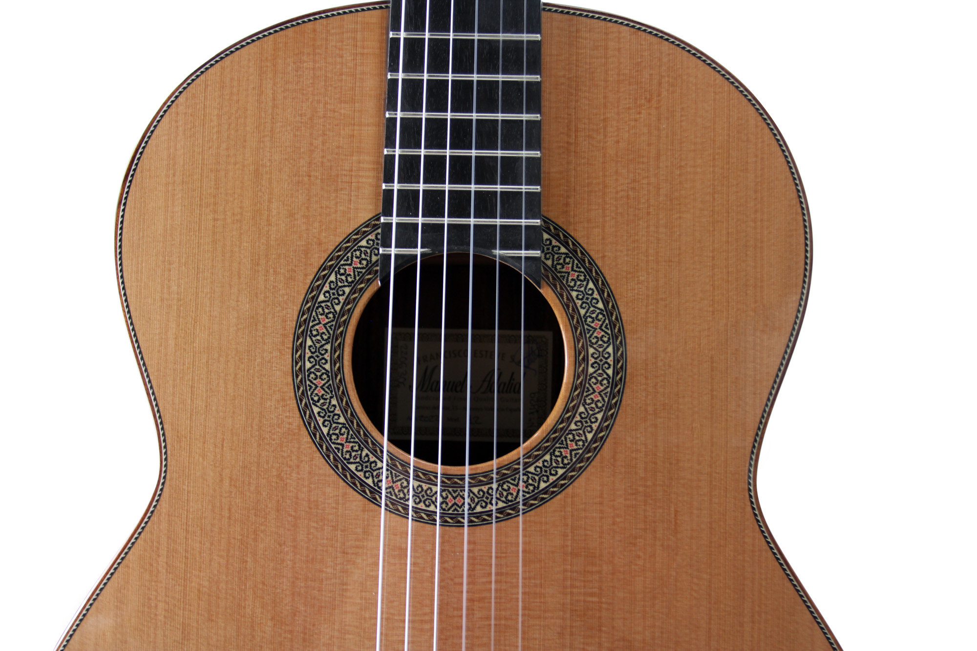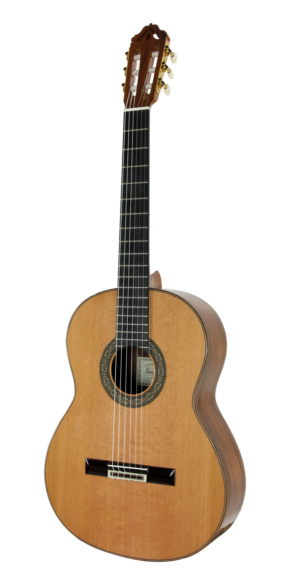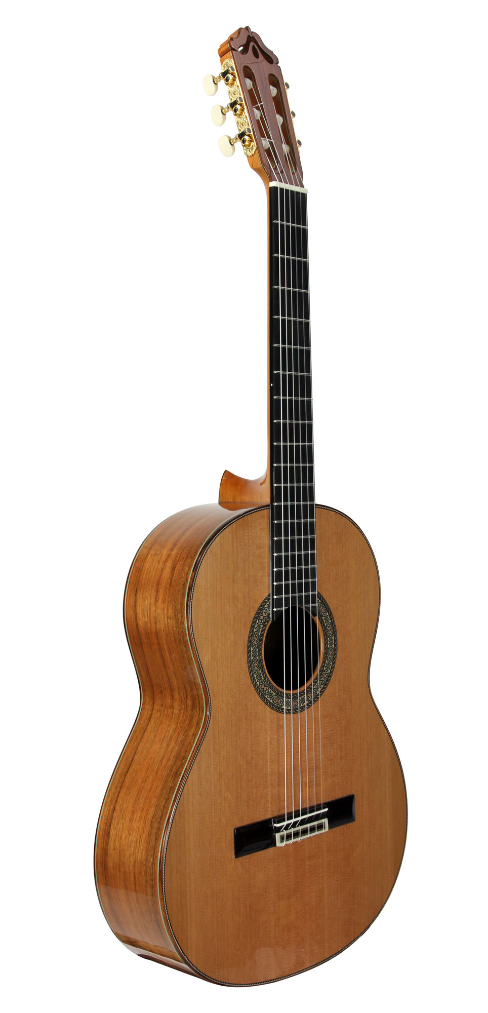 Caractéristiques principales : table en cèdre massif, fond et éclisses en palissandre brésilien massif, manche en cèdre avec insert en fibre de carbone, touche en ébène, sillet de 52 mm, diapason de 650 mm, cordes Savarez Alliance Carbon, avec soft case.