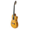 Ce modèle de type flamenco pan coupé a été conçu pour offrir une sonorité authentique et une grande réactivité. Il est doté d’une table en épicéa massif, associée à un fond et des éclisses en cyprès massif, pour une projection claire et une identité sonore typée. Son système électronique Fishman Prefix Pro Blend permet une amplification adaptée à la scène comme à la répétition. La finition jaune souligne son caractère distinctif. Un soft case est inclus.