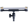 Ce support permet de maintenir une tablette ou un smartphone de 6,1" à 13" de manière stable, sur une table ou sur des pieds ronds ou carrés jusqu’à 3 cm d’épaisseur. Sa fixation polyvalente et son filetage 1/4" en font une solution pratique pour différents usages. Il supporte une charge maximale de 3 kg pour un poids de 570 g.