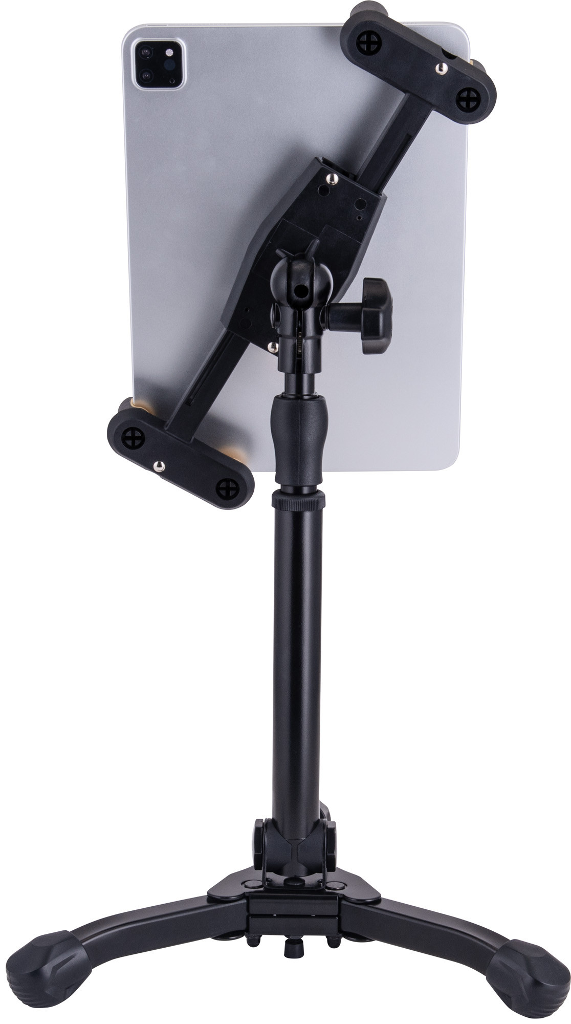 Ce support de table est conçu pour maintenir une tablette ou un smartphone de 6,1" à 13" en position stable et confortable. Il offre une rotation à 360° pour adapter facilement l’orientation de l’écran, ainsi qu’une inclinaison de 45° à 90° afin d’ajuster le point de vue selon l’usage. Sa hauteur est réglable de 31,5 à 39,5 cm, ce qui permet de l’adapter à différentes situations de travail ou de consultation. Sa base de 17 cm de rayon contribue à une bonne stabilité, tandis que ses dimensions pliées de 13,5 x 10 x 31 cm facilitent le rangement. Sa capacité de charge de 2 kg et son poids de 1,4 kg en font un accessoire pratique au quotidien.