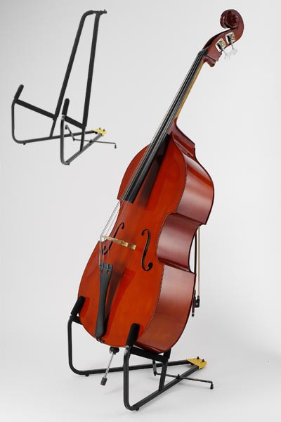Ce support pliant est conçu pour maintenir la contrebasse de façon stable et pratique. Il permet de poser le corps de l’instrument sur des pieds recouverts de mousse SFF, tout en intégrant un crochet pour archet. Sa conception compacte facilite le rangement et le transport une fois replié.