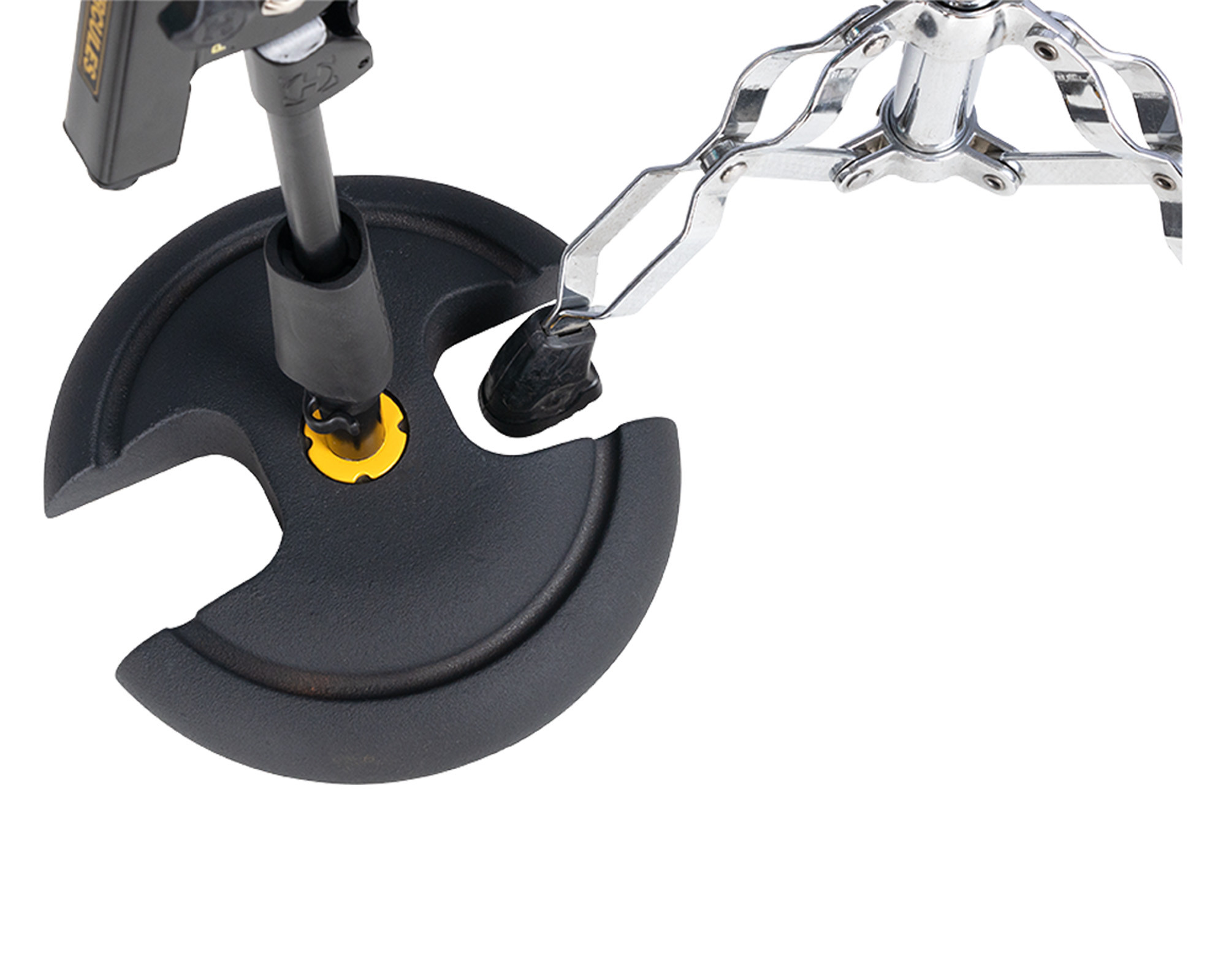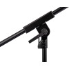 Ce support bas est conçu avec une perche télescopique courte en 2 parties et une base ronde en H. Il convient parfaitement lorsque l’espace au sol est réduit, notamment pour la batterie et les amplis.