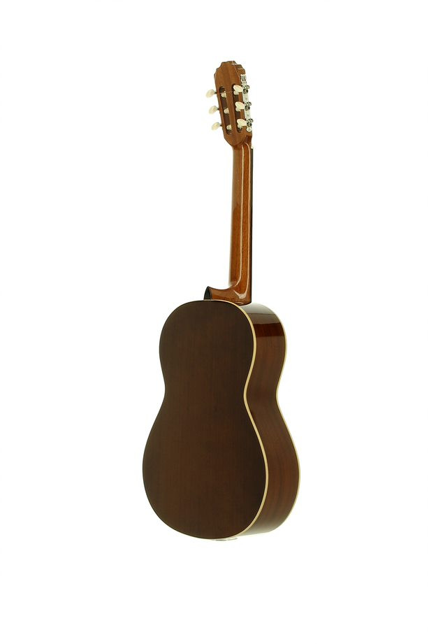 Cette guitare classique 4/4 est conçue pour offrir une réponse acoustique équilibrée et une construction soignée. Sa table en cèdre massif contribue à une belle projection sonore, tandis que le dos et les éclisses en acajou apportent chaleur et profondeur au timbre. Le manche en acajou, associé à une touche en palissandre indien, participe à une jouabilité agréable et stable.