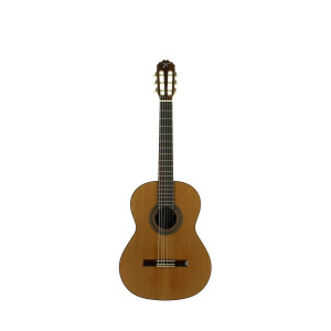 Il se distingue par sa table en cèdre massif, son dos et ses éclisses en acajou, sa touche en palissandre indien, ses sillets en os et sa finition naturelle brillante.
