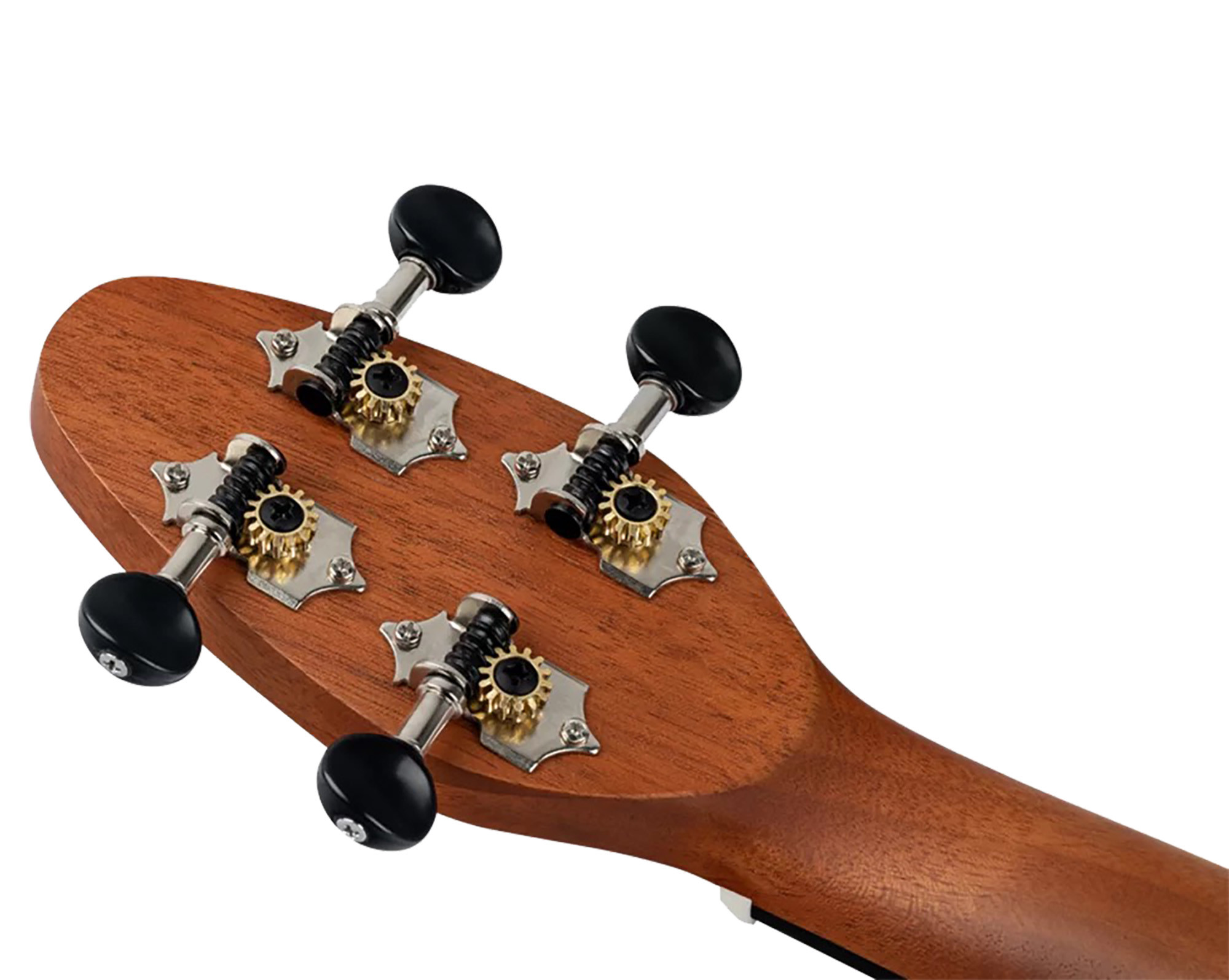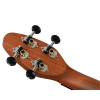 Ce modèle dispose d’un manche en okoumé, de 12 frettes, d’un placage de tête assorti, d’un diapason de 364 mm, ainsi que d’une touche et d’un chevalet en ABS. Il est équipé de mécaniques ouvertes avec boutons noirs. Le pack inclut également plusieurs accessoires utiles : un accordeur clip, une courroie rosace, 5 médiators médium et une housse à cordon.