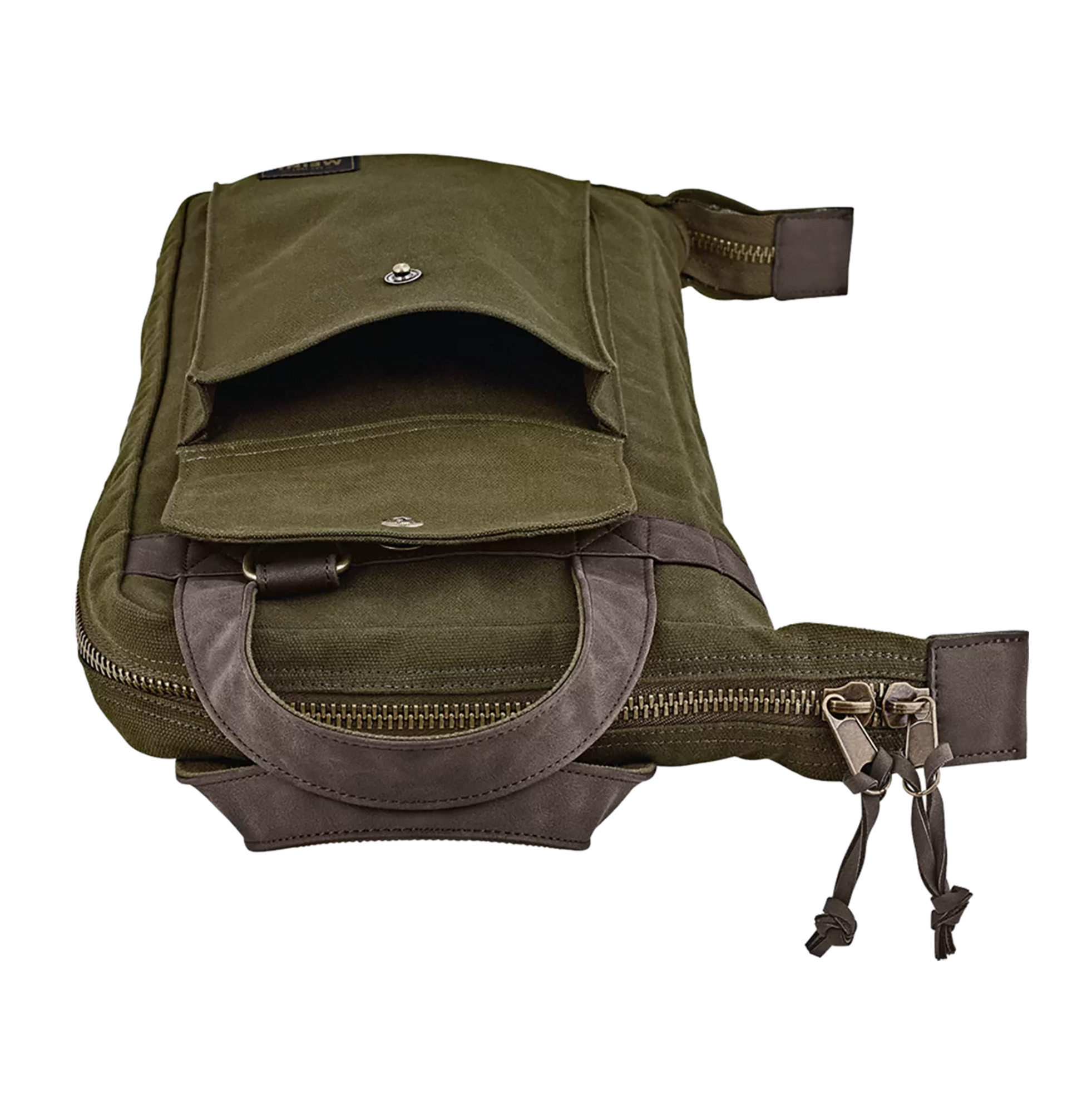 Il se distingue par son format simple et fonctionnel, ainsi que par sa toile cirée couleur Forest Green, idéale pour ceux qui recherchent une solution à la fois discrète et pratique.