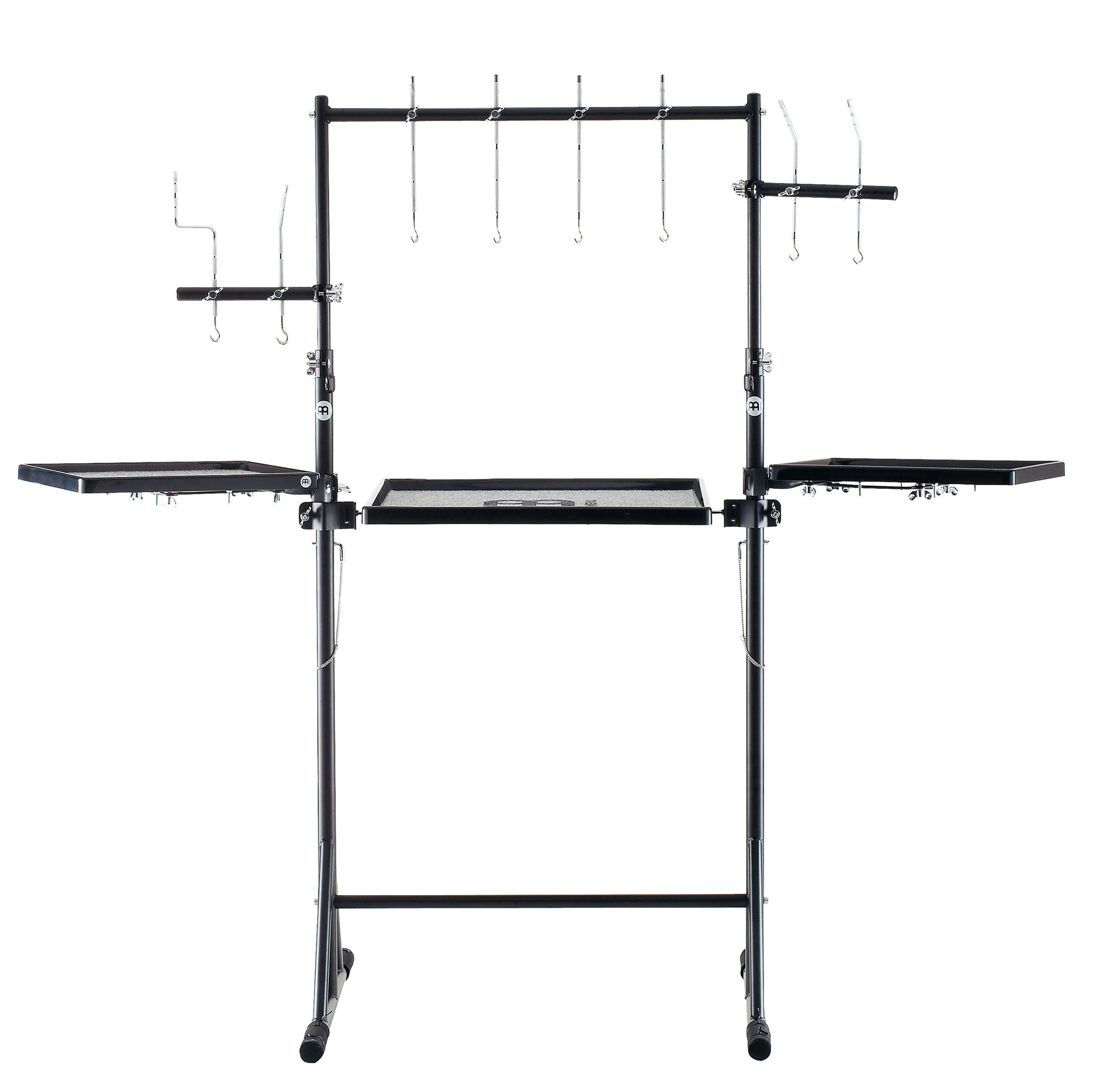 Workstation complet pour percussions, avec tables en fibre de verre résistantes, structure en acier et finition noire poudrée. Ce poste de travail est totalement personnalisable, avec des hauteurs ajustables et des tiges à inclinaison réglable pour s’adapter facilement à vos besoins de jeu et d’installation.