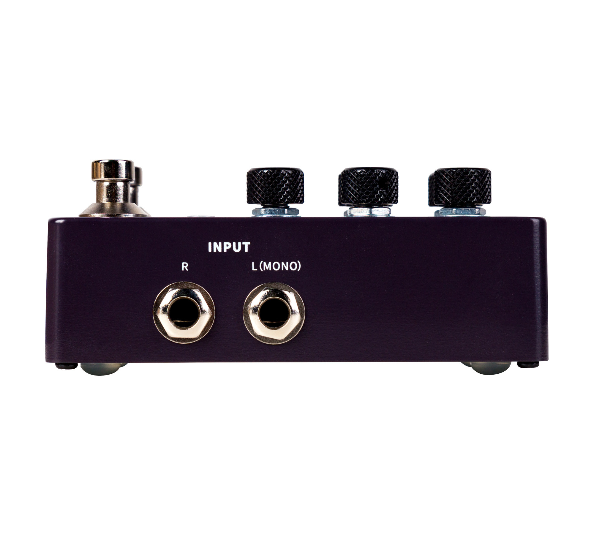La mise à jour du micrologiciel se fait via USB, avec un câble USB-C vers USB-A inclus. Le boîtier en métal apporte une construction robuste, tandis que l’alimentation est assurée par un adaptateur 9V fourni. Son format compact de 115 x 75 x 33 mm et son poids de 310 g facilitent l’intégration dans un pedalboard.