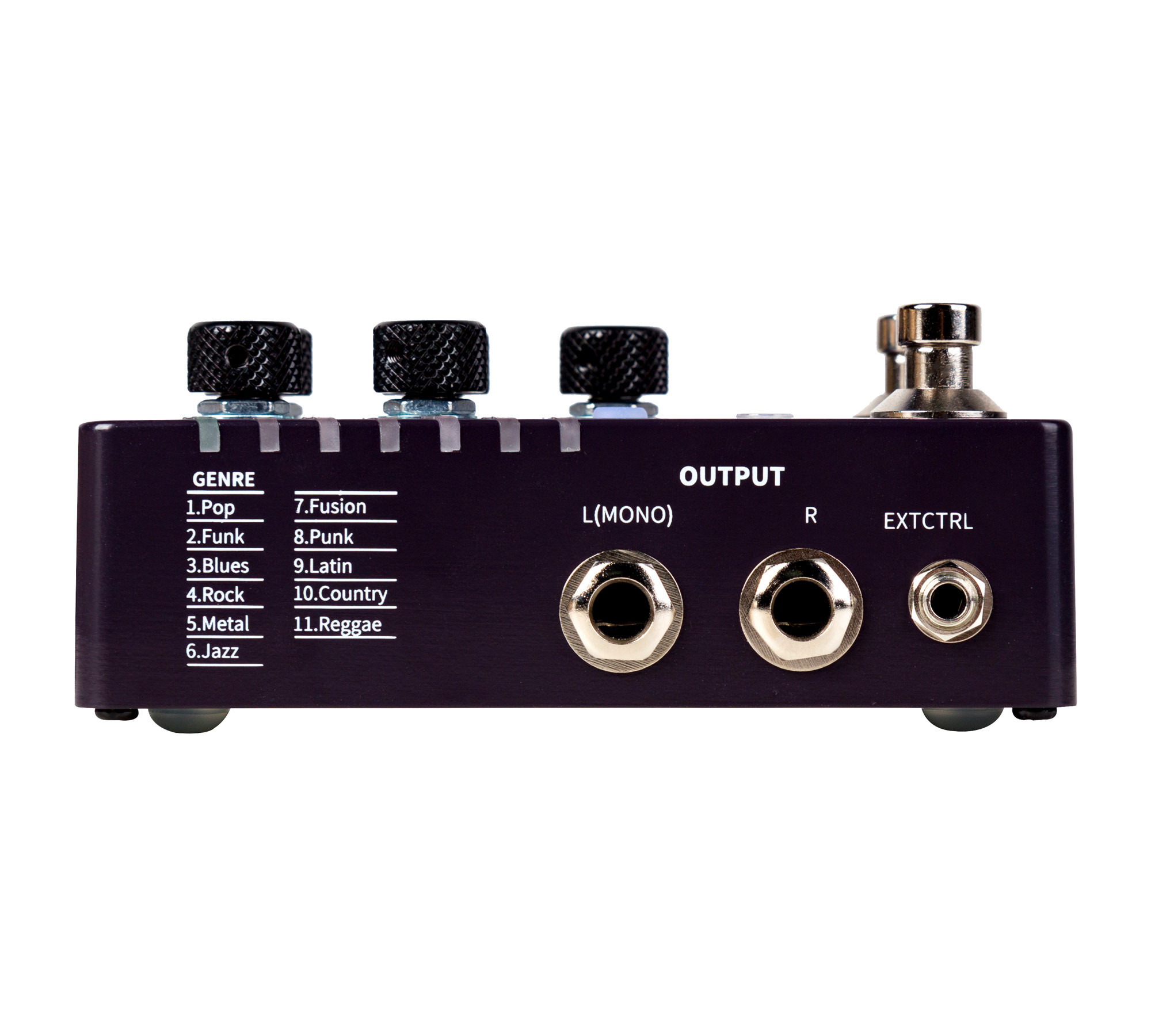 Il se distingue par ses 11 styles chacun déclinés en 11 grooves, ses 7 presets utilisateurs, sa fonction FILL au footswitch et sa prise pour footswitch externe, ce qui en fait une solution complète et flexible dans sa catégorie.