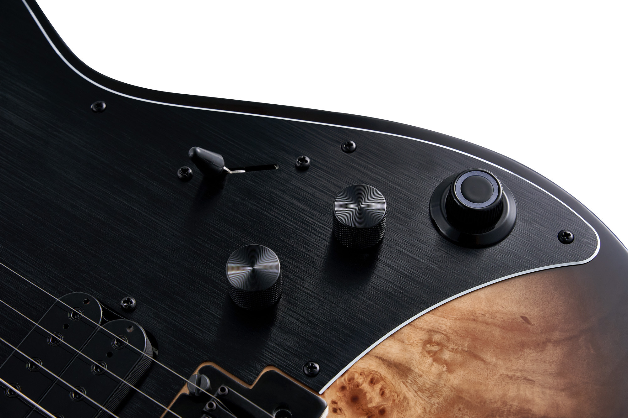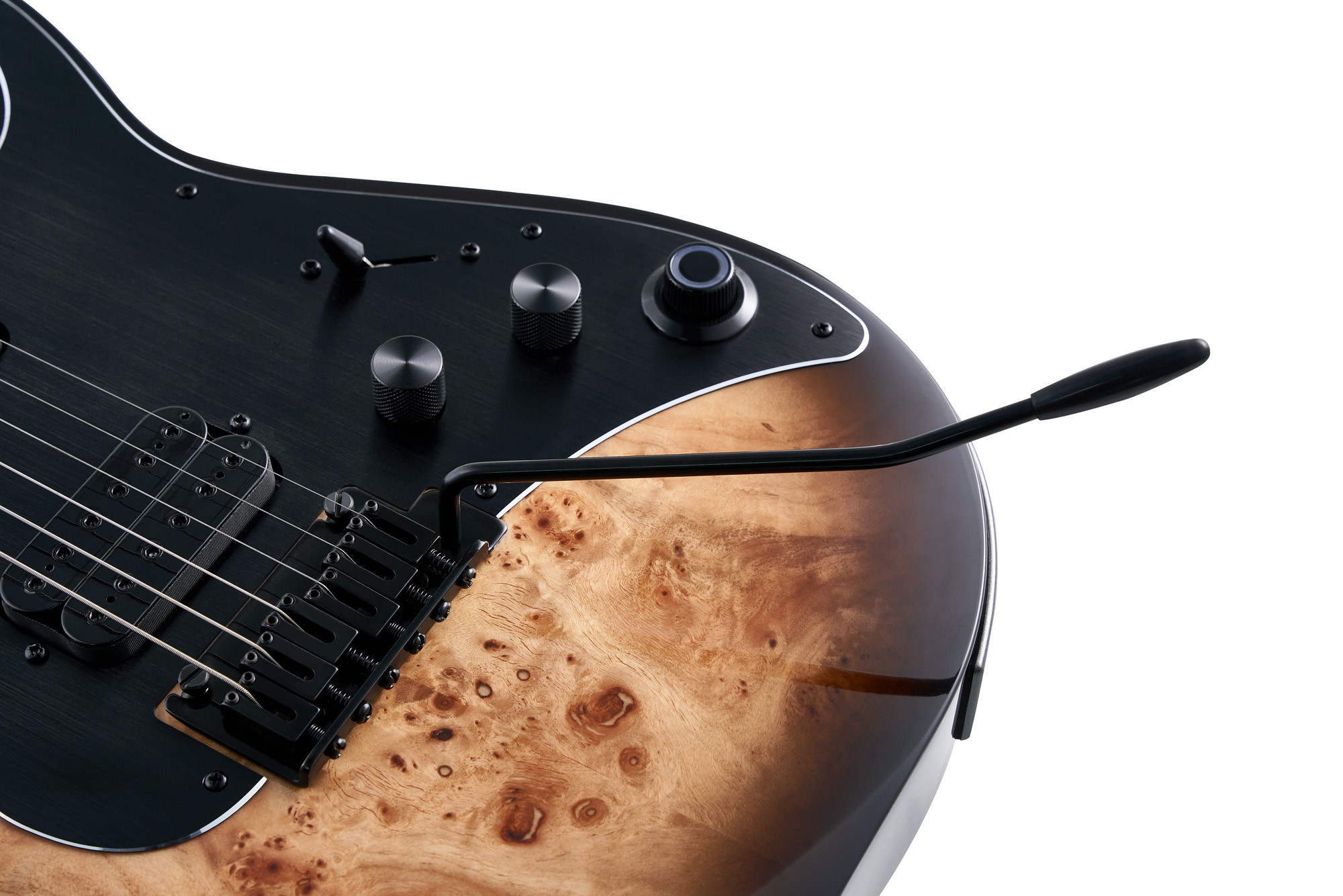 La M810 combine une conception soignée et une intégration intelligente pour offrir une expérience de jeu moderne et polyvalente. Son corps en aulne, sa table en loupe de peuplier, son manche en érable torréfié satiné au profil en C et sa touche en palissandre avec radius de 12" assurent une prise en main confortable et un ressenti agréable. La configuration de micros GTRS HMT-1N/B en H/H, associée au processeur GTRS intégré, permet d’accéder à de nombreuses possibilités sonores directement depuis l’instrument.