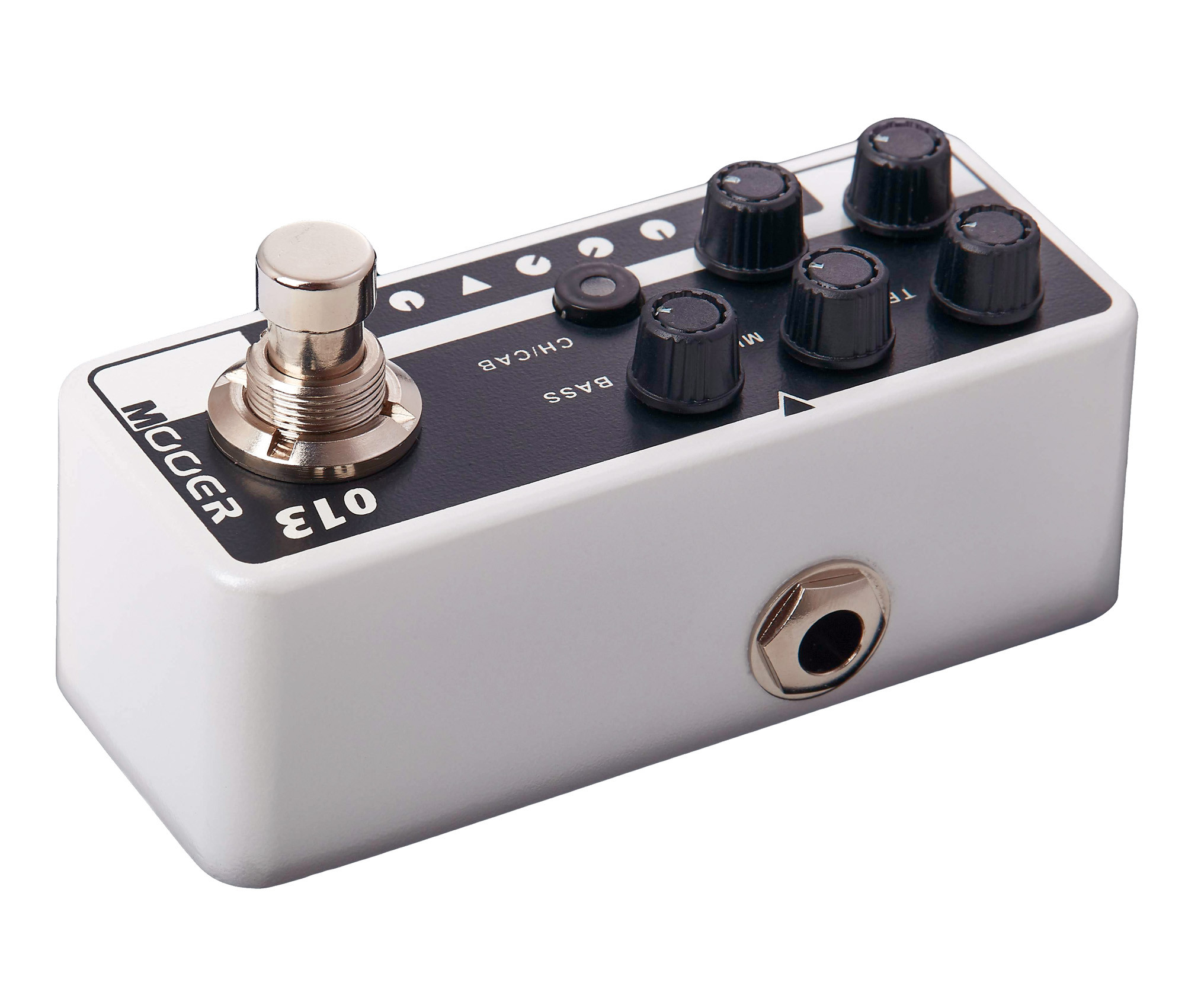 Cette pédale de préampli numérique offre une sonorité de type American Classic combo 30W avec deux canaux indépendants. Chaque canal dispose d’un égaliseur 3 bandes, permettant d’ajuster précisément le son selon vos besoins. Son design noir et blanc et son boîtier en métal en font un modèle compact et robuste, adapté à une utilisation régulière.